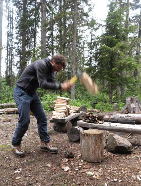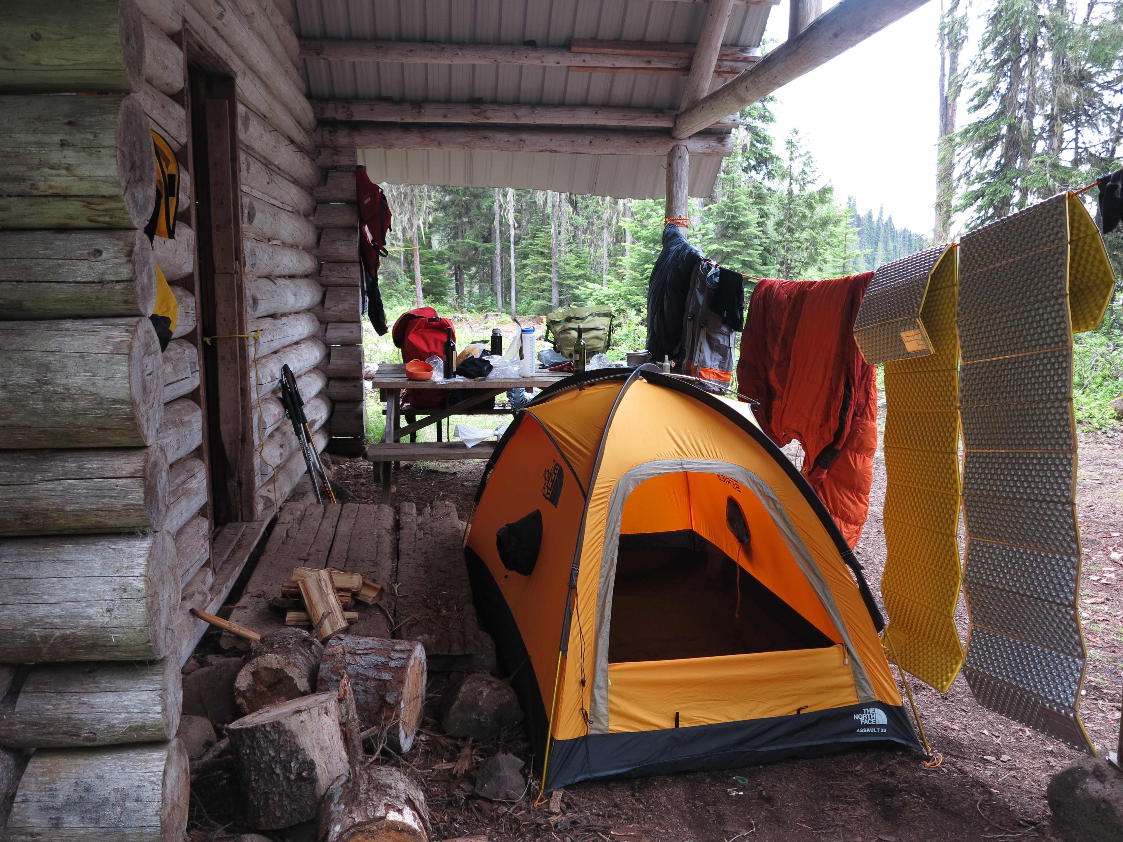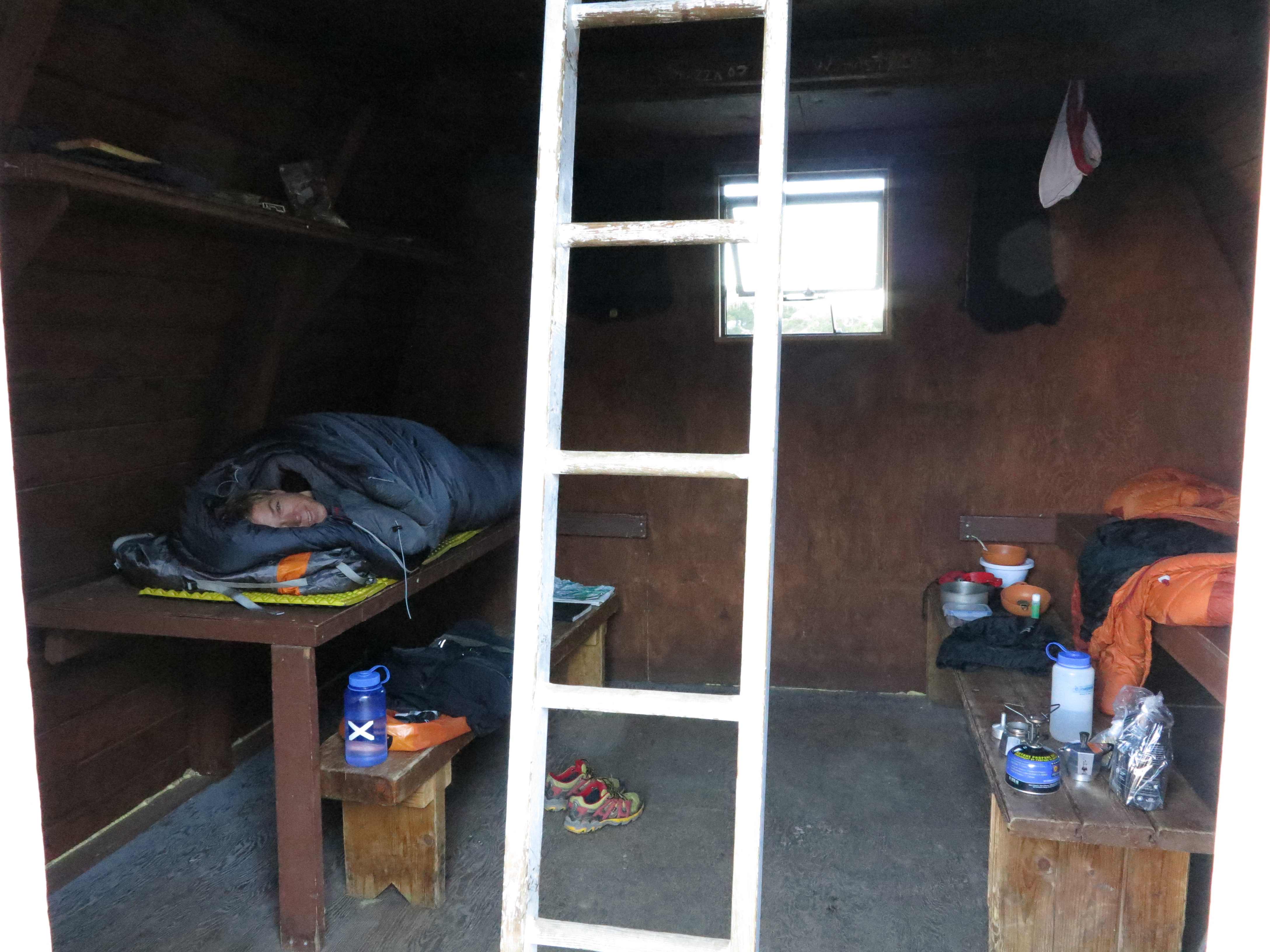 Sleeping in the hut. It is difficult to get the wife out of the warm sleeping bag!