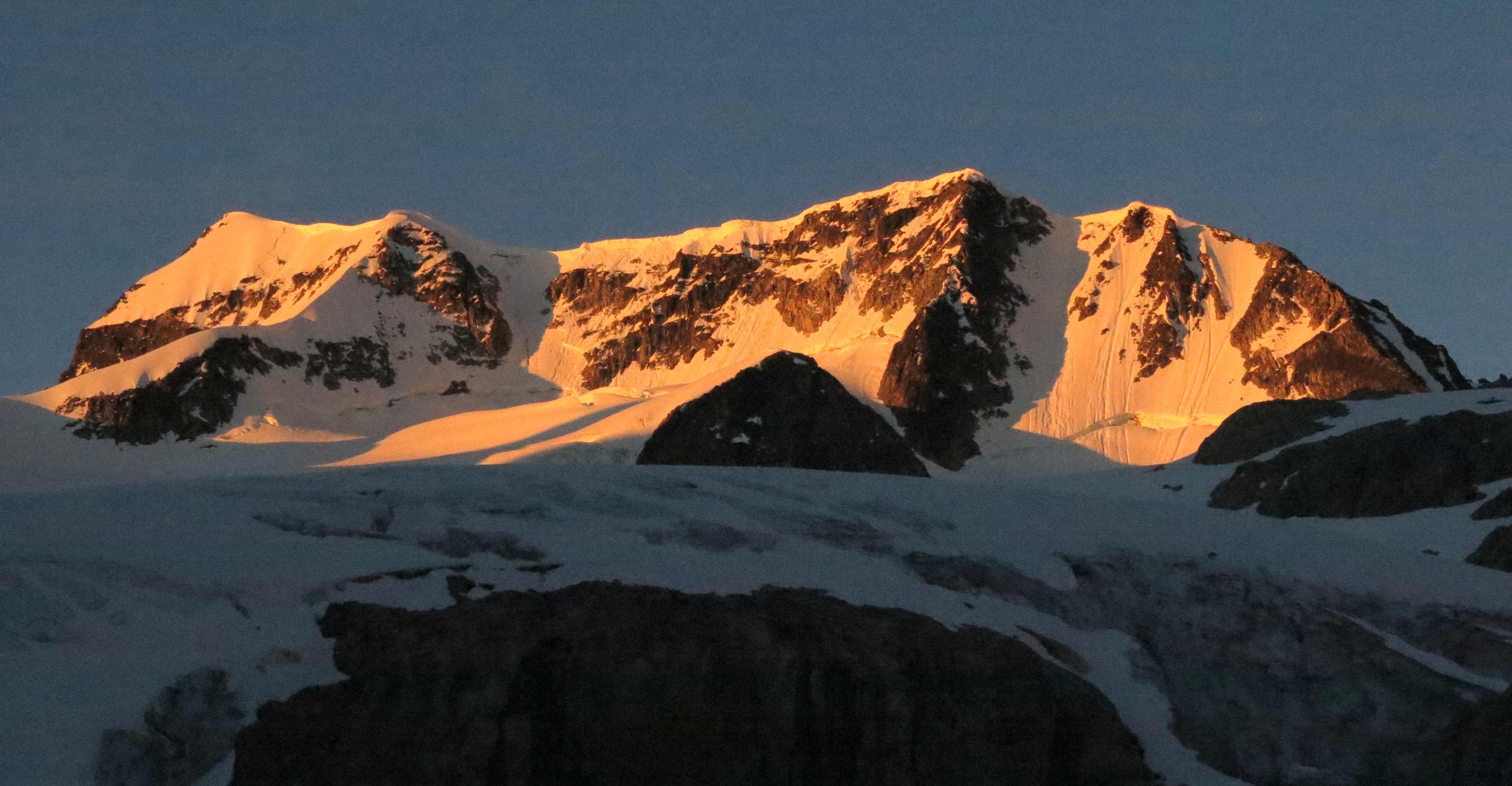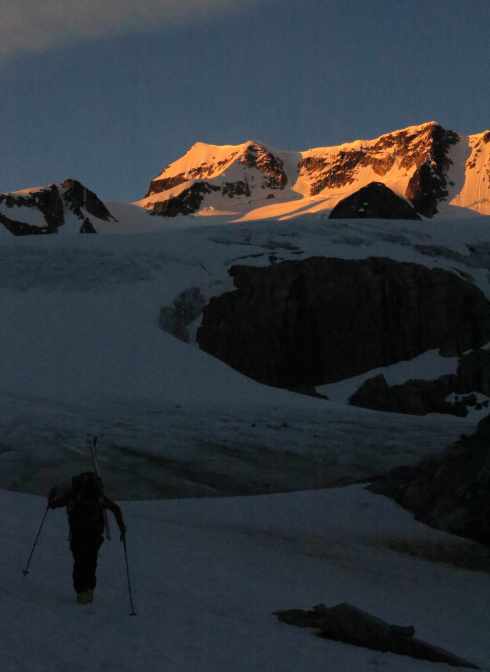 We started from the hut at 04.30 in the morning. At around 05.30, the sun set the mountains on fire while we started to walk up the glacier.