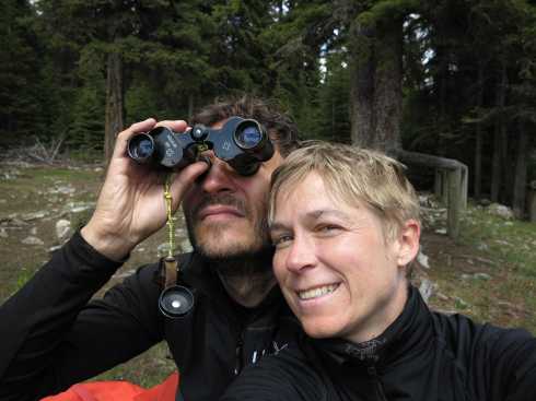 Taking a break and enjoying the view. Steep slope!
