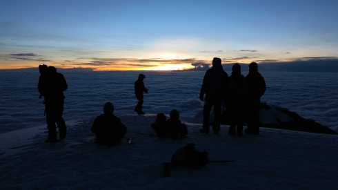 At the summit 05.30 in the morning, watching the sun rise.