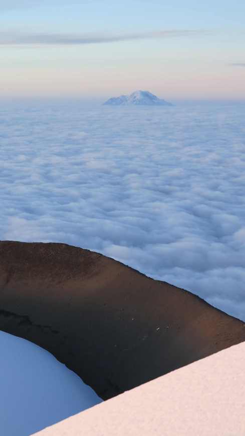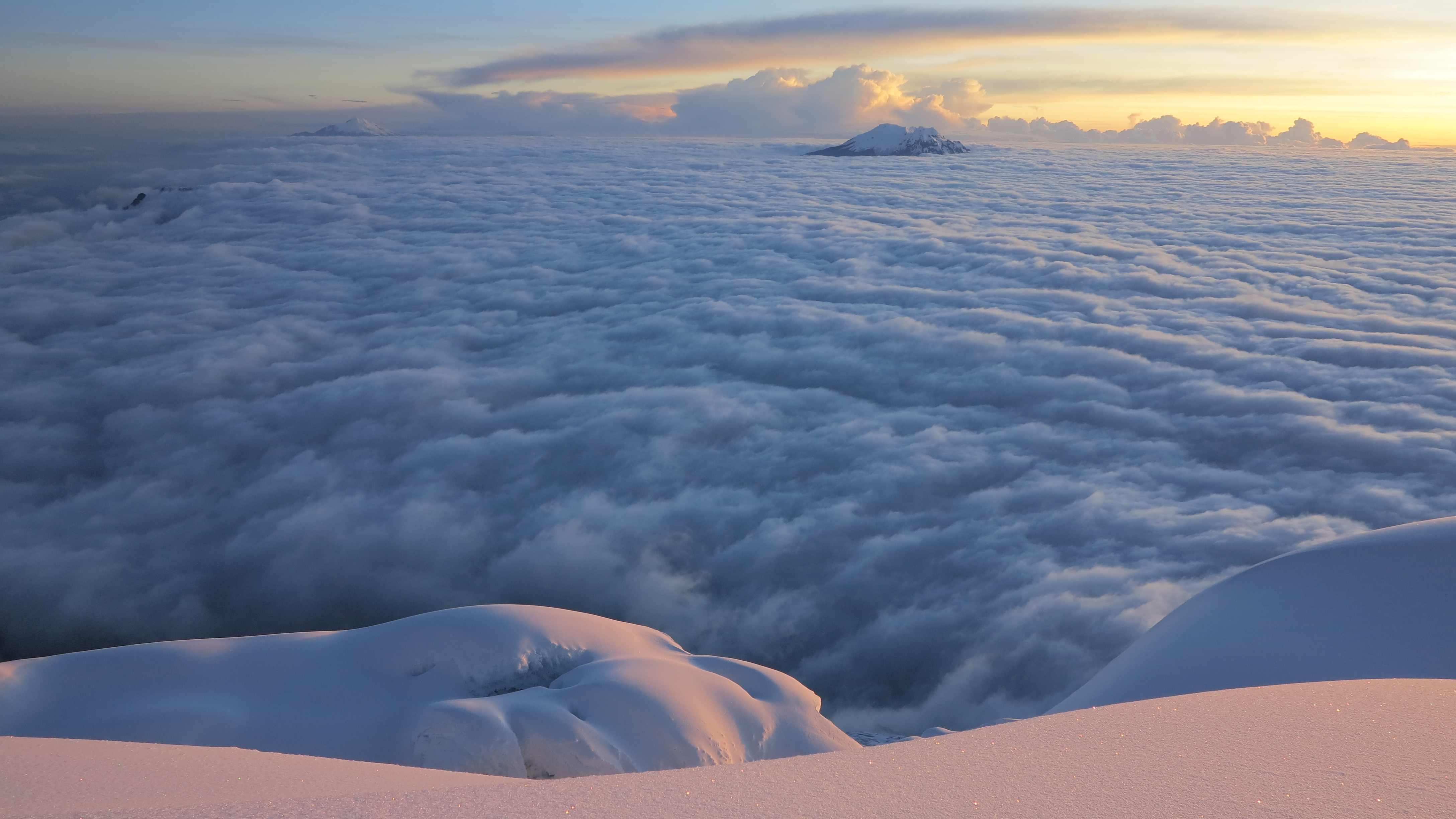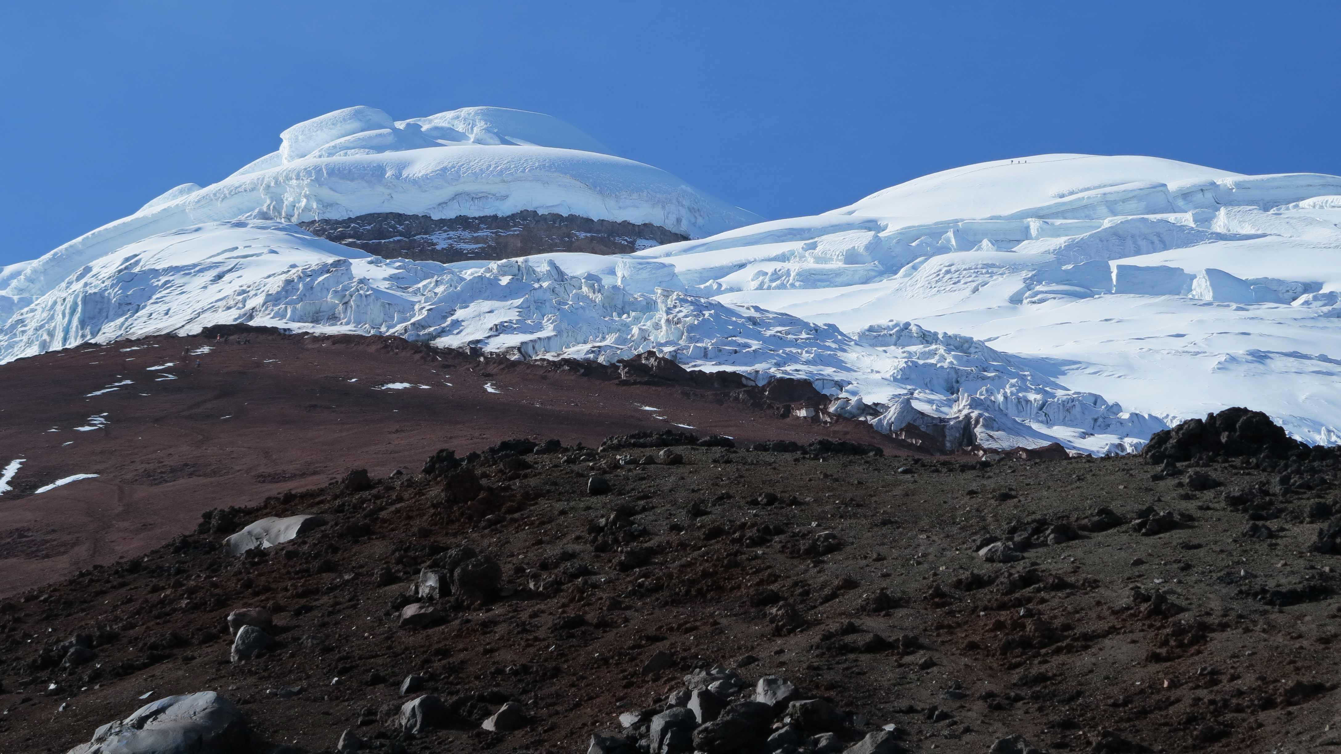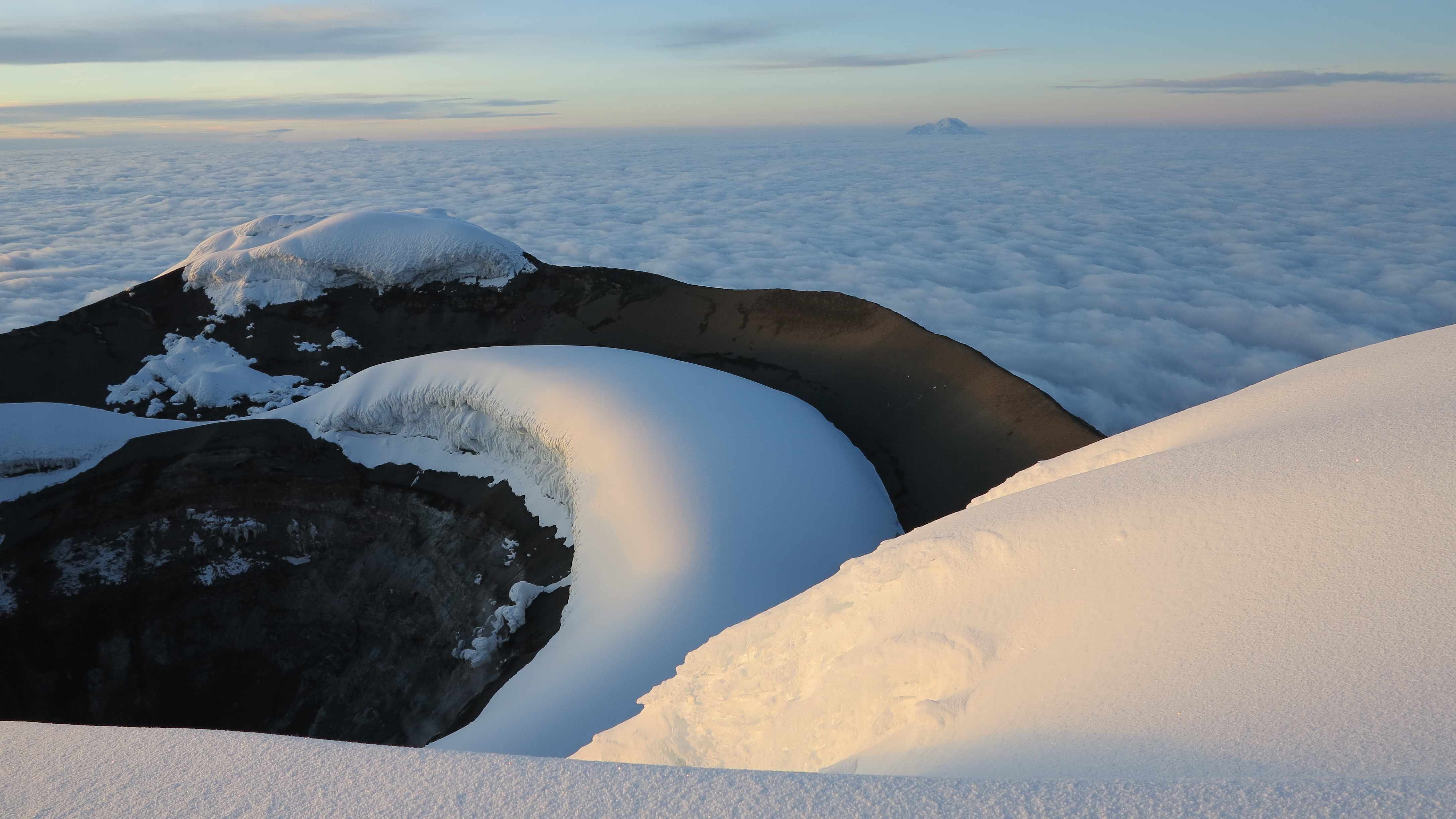 Cotopaxi crater with Chimborazo in the background.