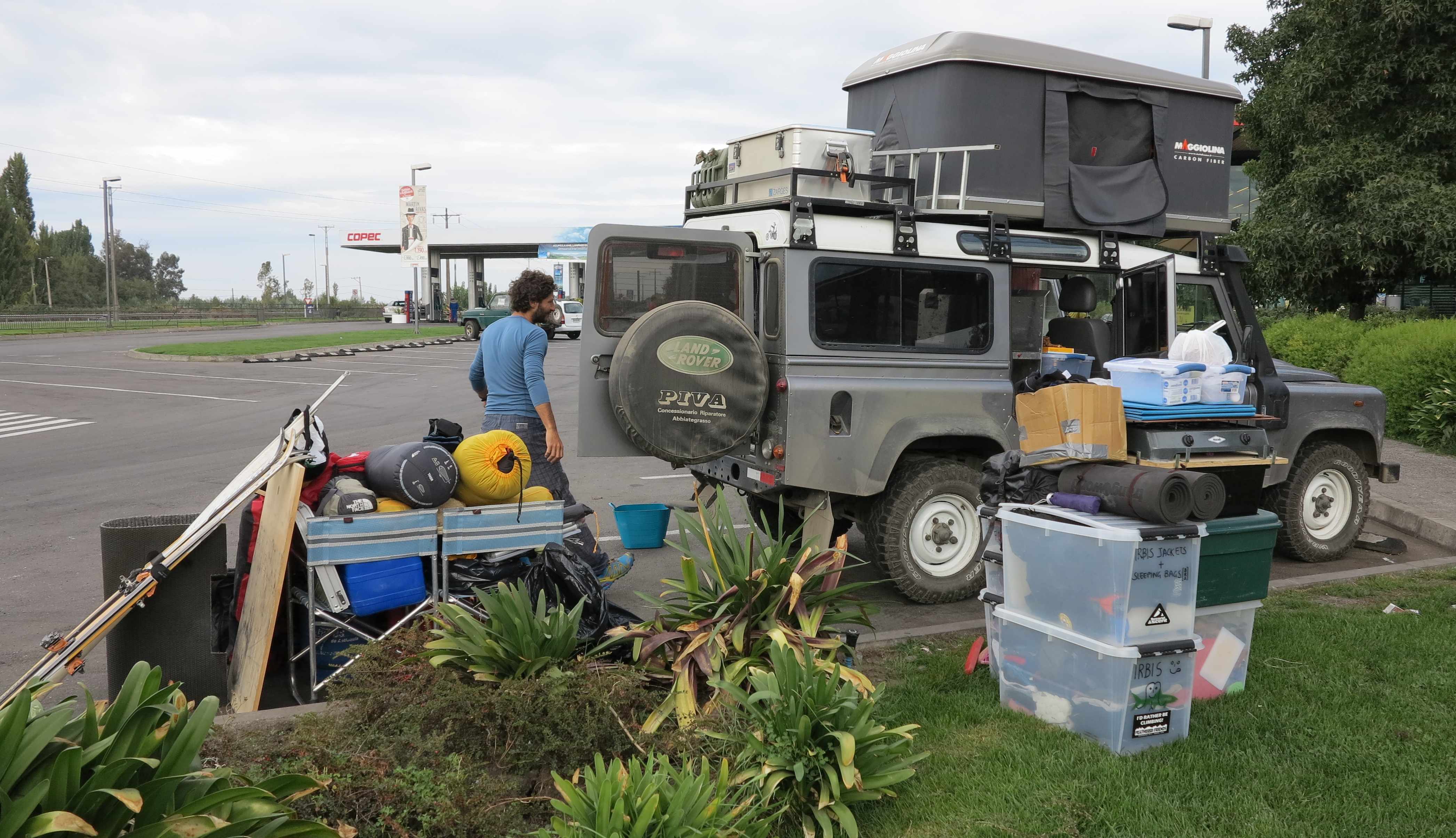 Now it is time for Frida to get clean! Here we have all our belongings outside on the grass in one of the COPEC petrol stations along the highway 5 to Santiago, Chile.IMG_8228_small