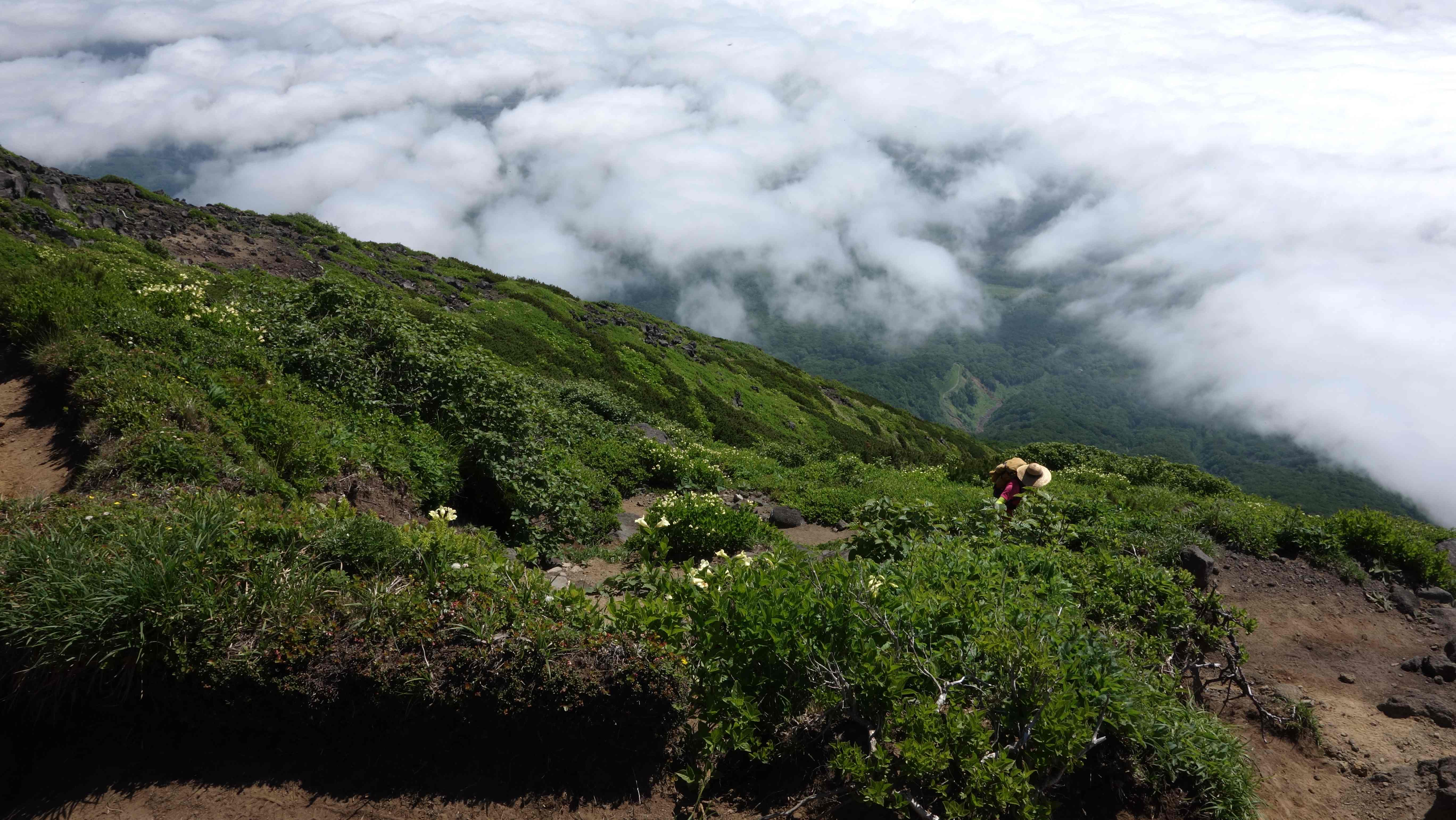 It is already July and we are slowly making our way north, to Wakkanai, from where we will take the ferry to Russia, Sakhalin Island. While on the road, we suddenly had a view to two beautiful volcanos, just a bit off the road. It was still early in the day so we decided to make a stop and climb the largest one of them which turned out to be Meakan, 1499 m high, also known as “the husband” as opposed to the smaller neighboring volcano which is “the wife”.