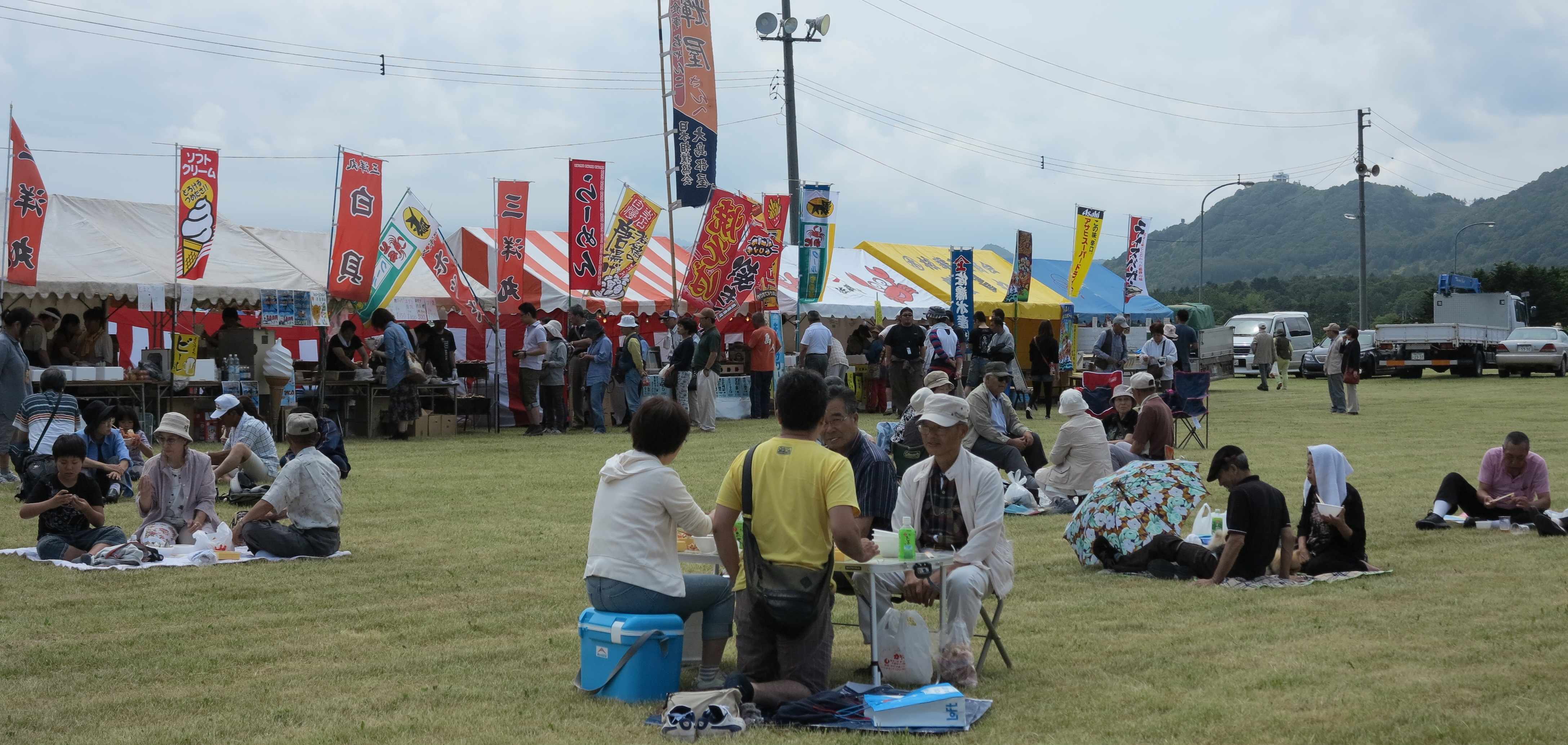 The second festival was the crab festival in Esashi. We were there early in the day when everyone got filled up on delicious crab meat as well as freshly grilled squid and scallops. But it was obvious from the amount of still-empty beer & burger tents, that later in the day also the beer would start flowing in great amounts and we could see that a music stage was being put up so……yes!