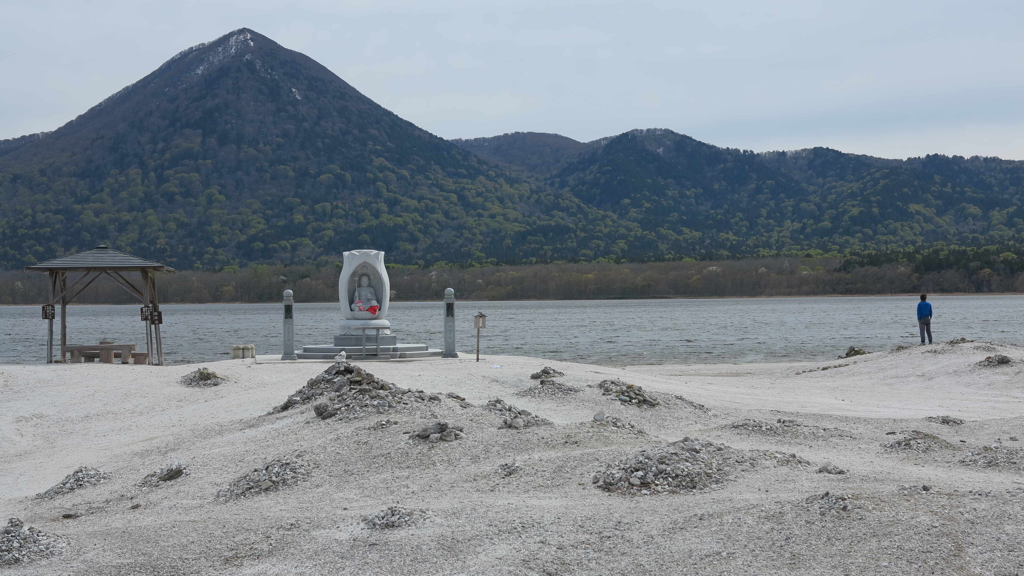 A buddhist temple, the Osorezan-Bodaiji, was founded on the shores of the crater lake in the 9th century.