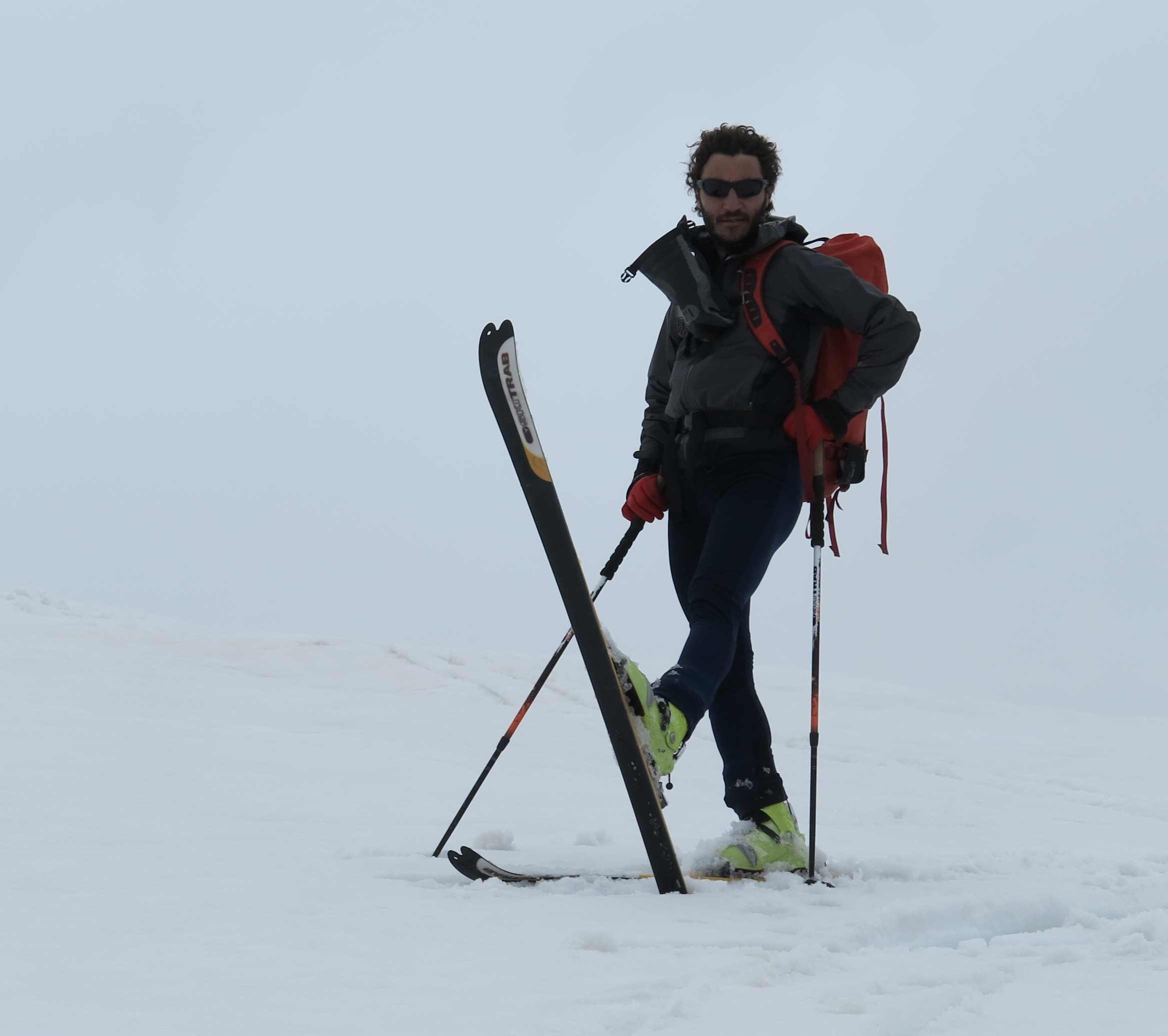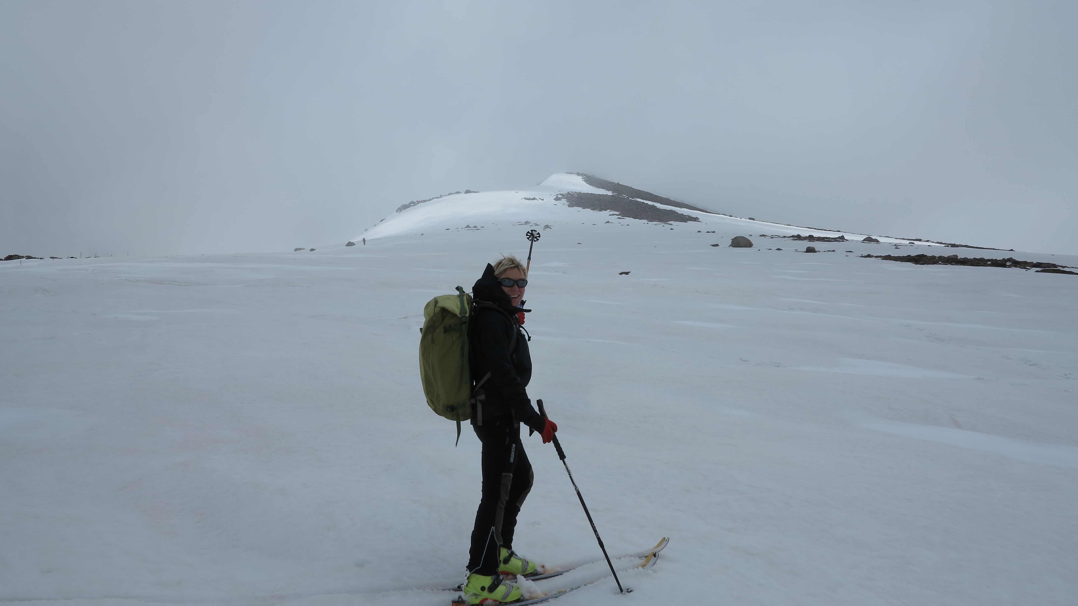 And then we headed down, looking forward to an easy descent but instead we found the steep slope so icy that we had to practice ice climbing with the ice axe and the tip of the crampons for the first 150 m. Some very delicate moments! The rest of the way down we had to pay a lot of attention not to slip and fall down the slope. Therefore no pictures! In the photo below we are down at the base of the slope with the legs very tired….only to find that we had to crawl through this bloody tunnel which had been half filled with snow during the winter. Poor the legs!IMG_9777_small