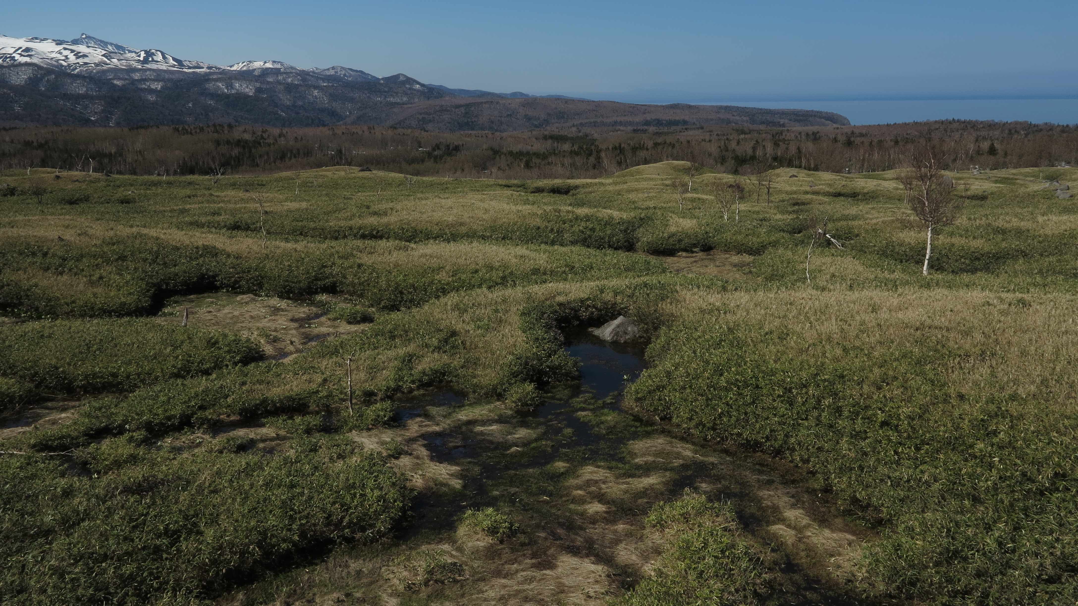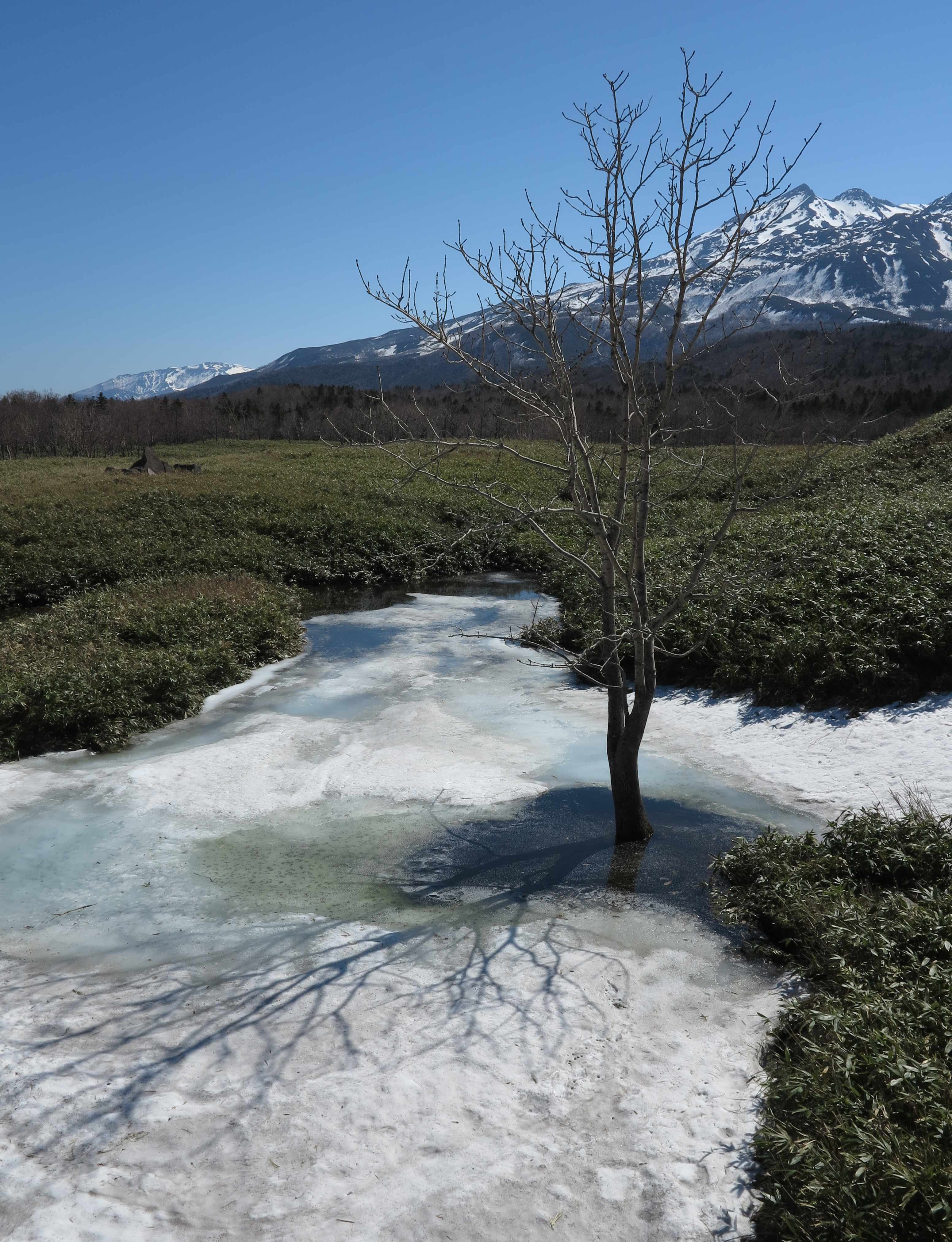 The Shiretoko is a world heritage National Park, full of beautiful pristine nature and brown bears. Now the mountains in the central part of the peninsular are still full of snow, but we would like to come back and climb them later. To the right, Rausu-dake, the tallest mountain of the peninsular at 1,661 m.