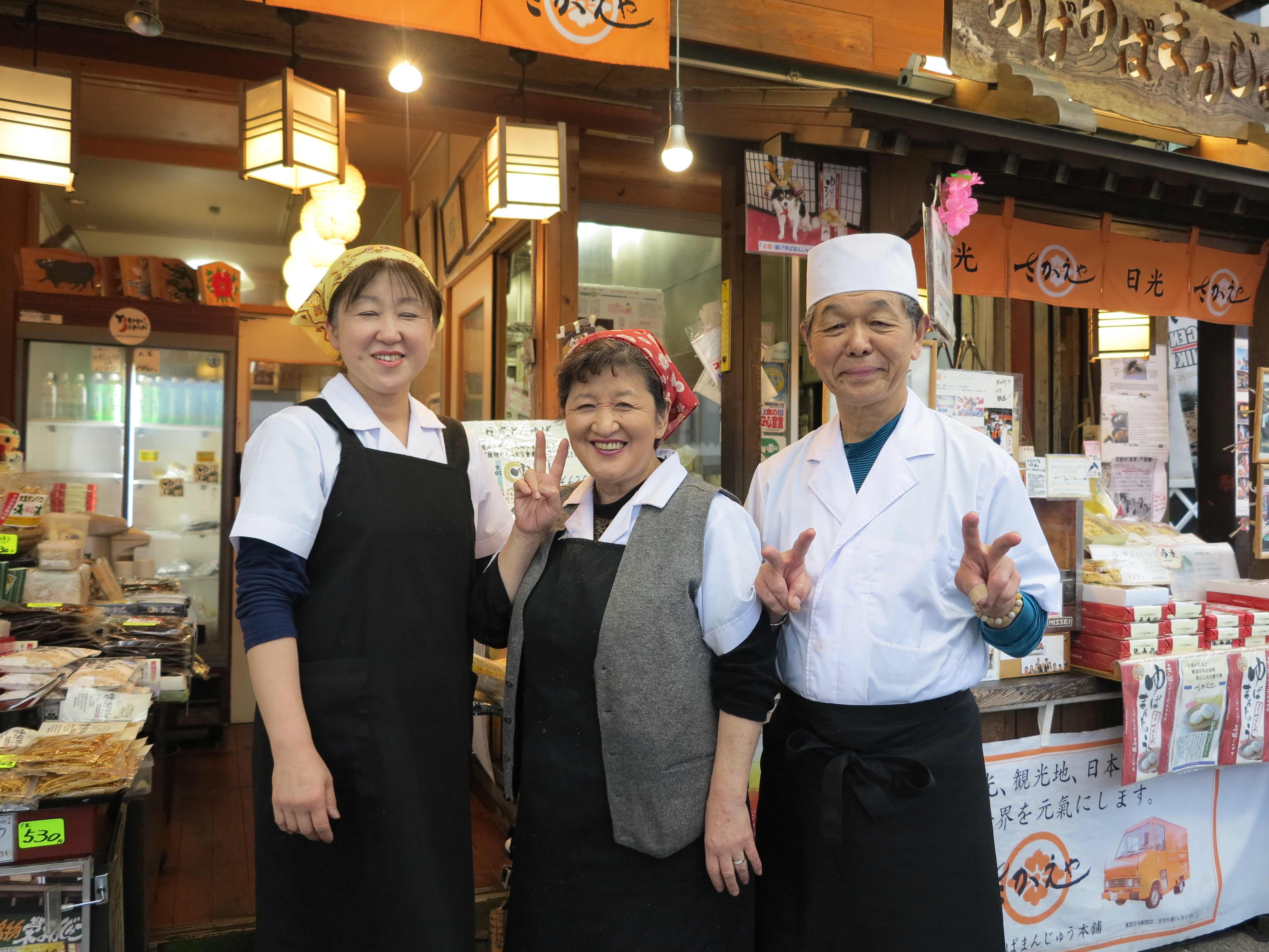 Fortunately, Nikko was on our route back down to Tokyo. And yes, Nikko was the place where we ate the small crunchy, salty and sweet “agemanjyu”, a fried bean dumpling which is incredibly tasty. It is served fresh and hot in front of this small shop at the train station square in central Nikko. That was back in the middle of April but we remembered the fantastic taste of the agemanjyu and had to return for more! We parked Frida right in front of the shop where they were happy to see us back 🙂IMG_0604_small
