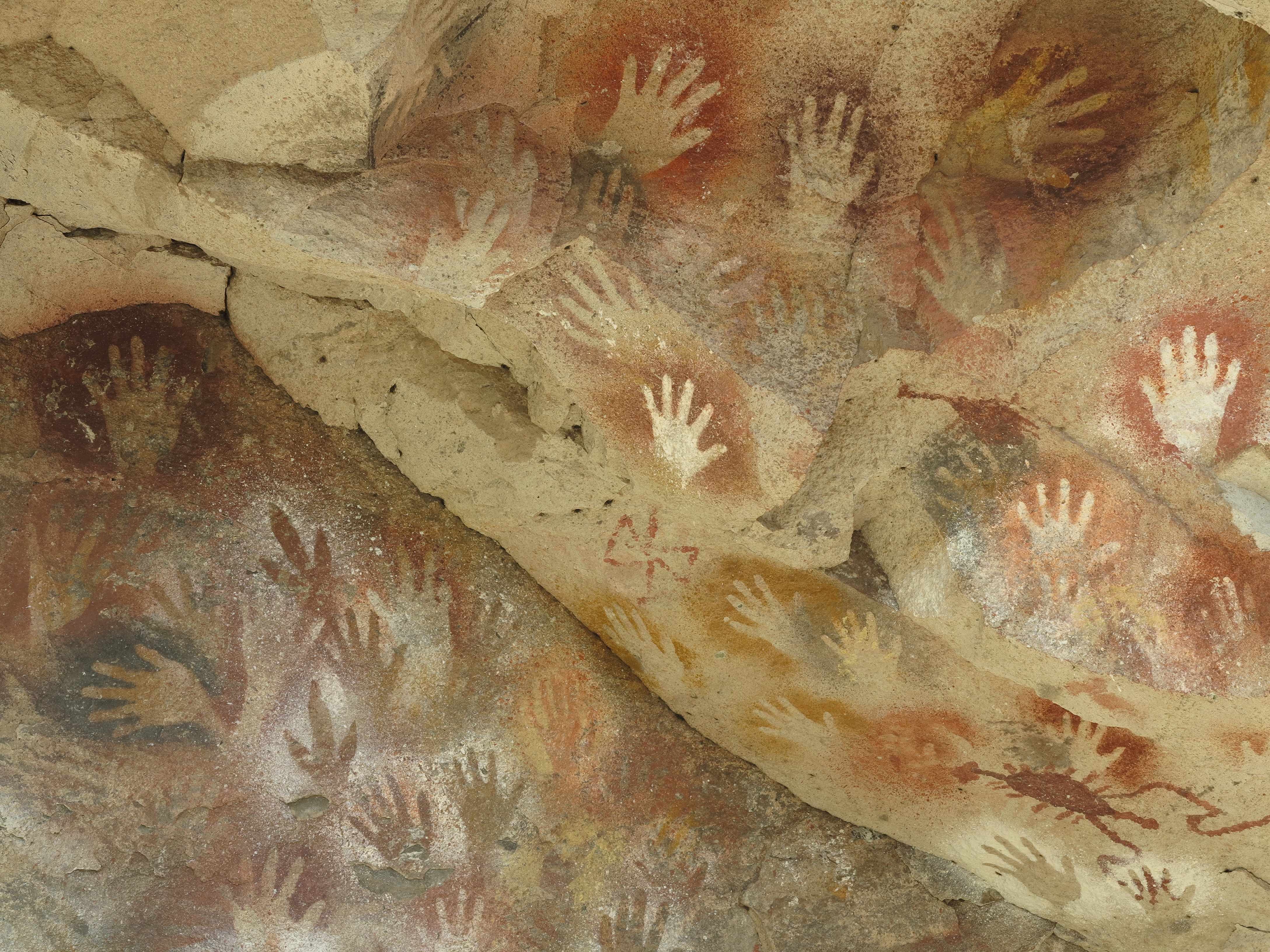 Wild guanacos still roam the hills like they did 10,000 years ago when the hunters painted their hands and images of guanacos on the walls of the canyon.