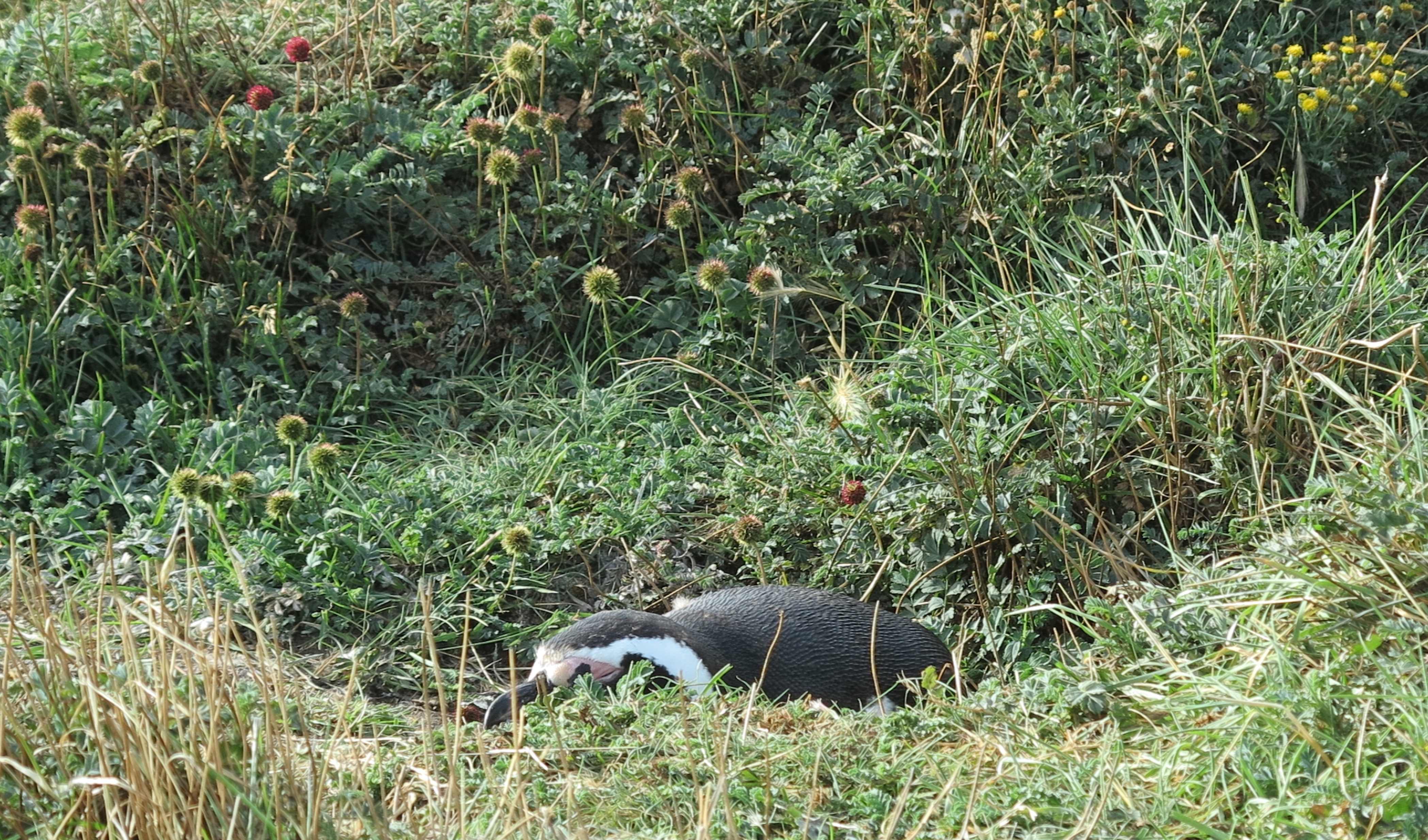 Who is there sleeping in the grass! The Magellanic Penguin makes its nest in the ground close to the shore.