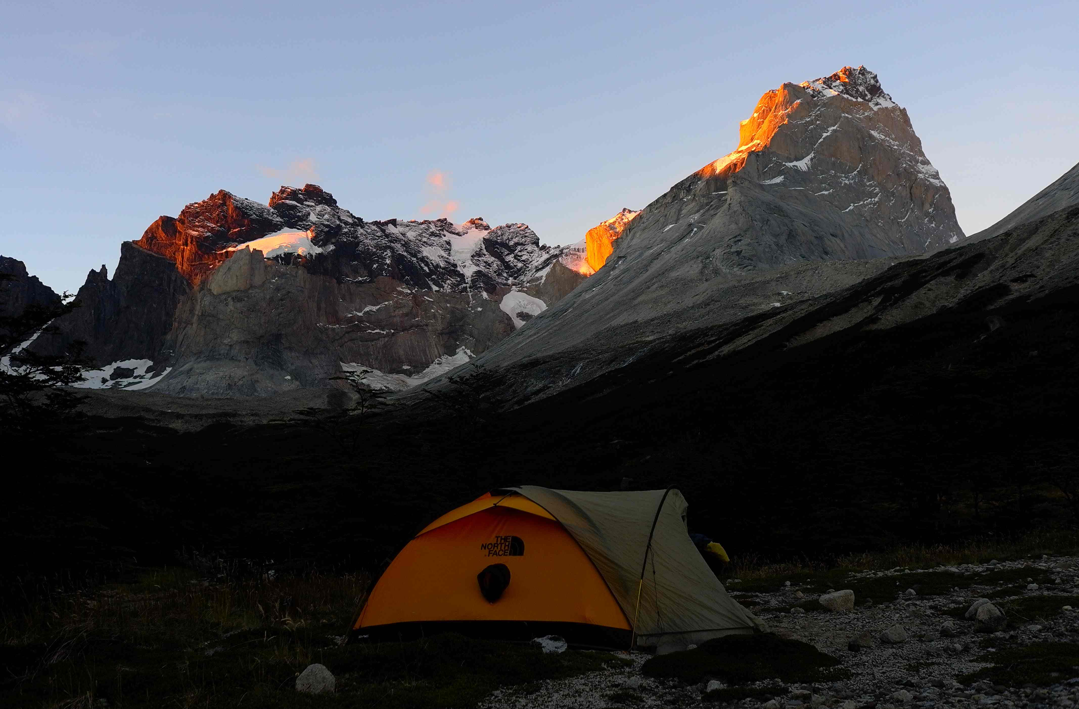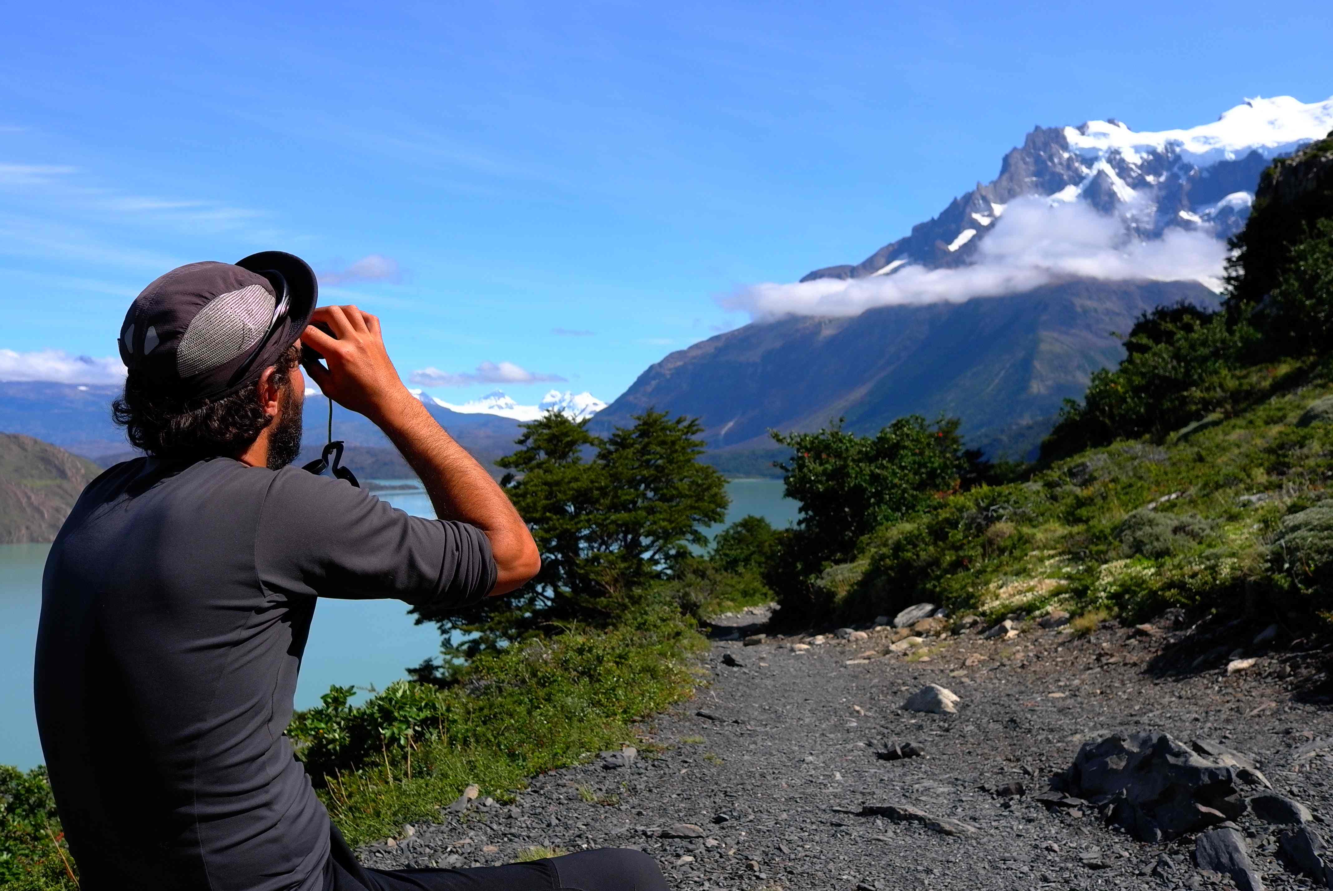 Toro Seduto is checking out the Cerro Paine Grande at the entrance to the Valle del Frances.