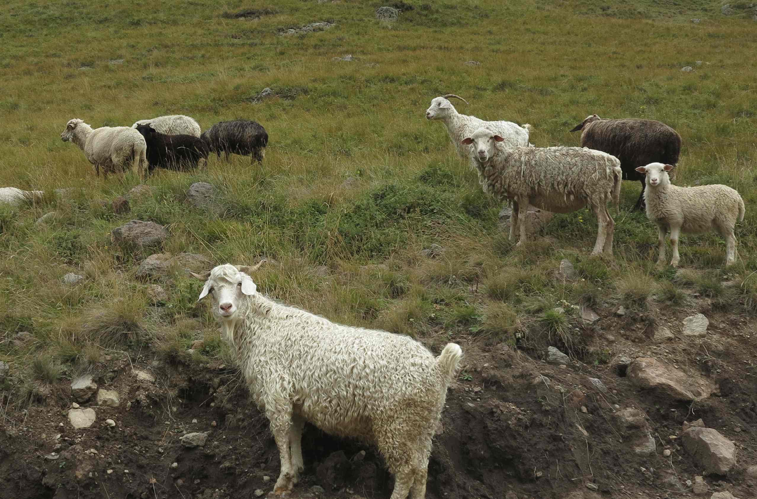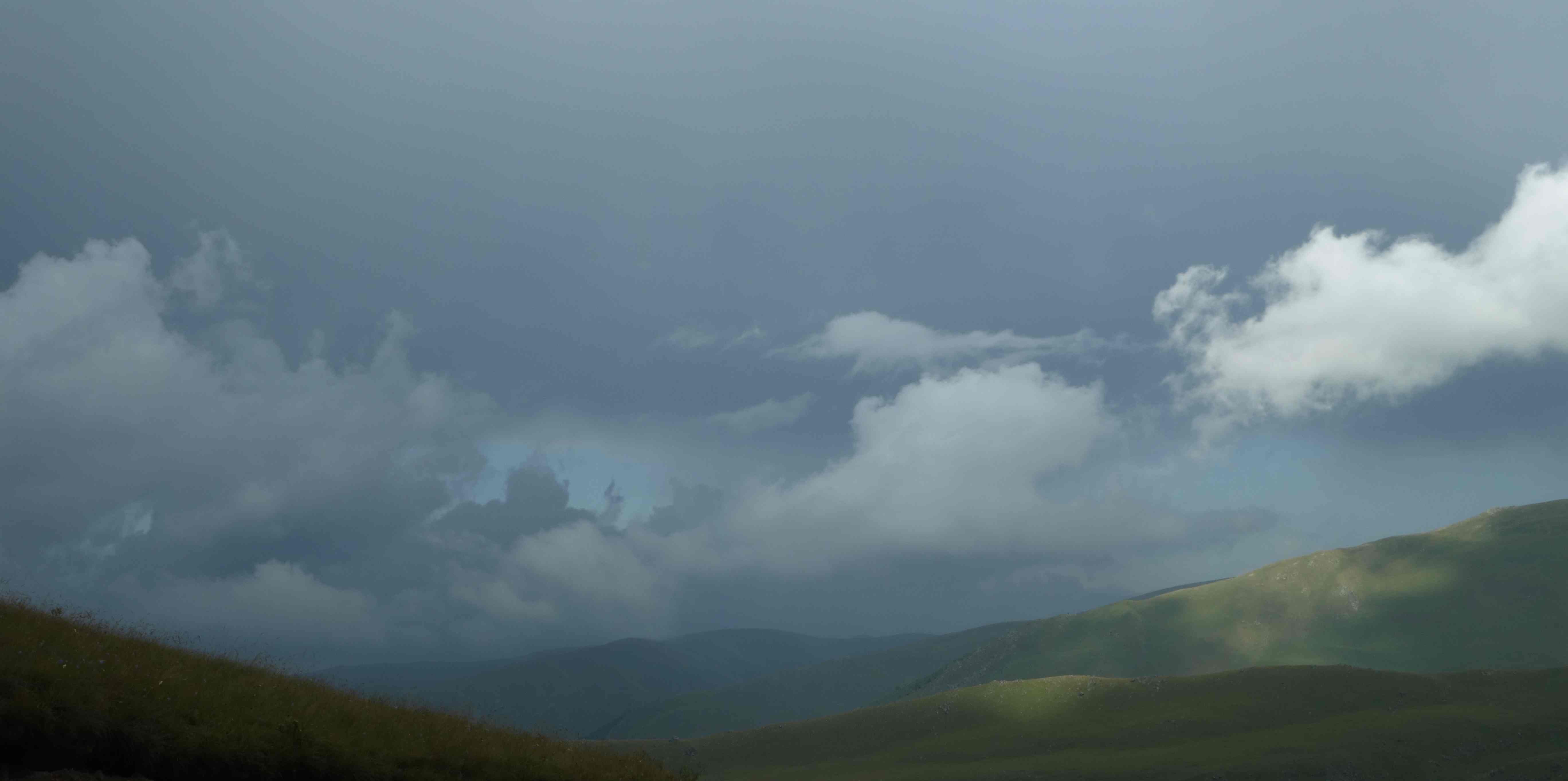 As we got closer to Elbrus, the weather got grey. Typical for the afternoon. There were lots of small summer camps of the local mountain people with sheep, goats and cows out and about in the green fields.