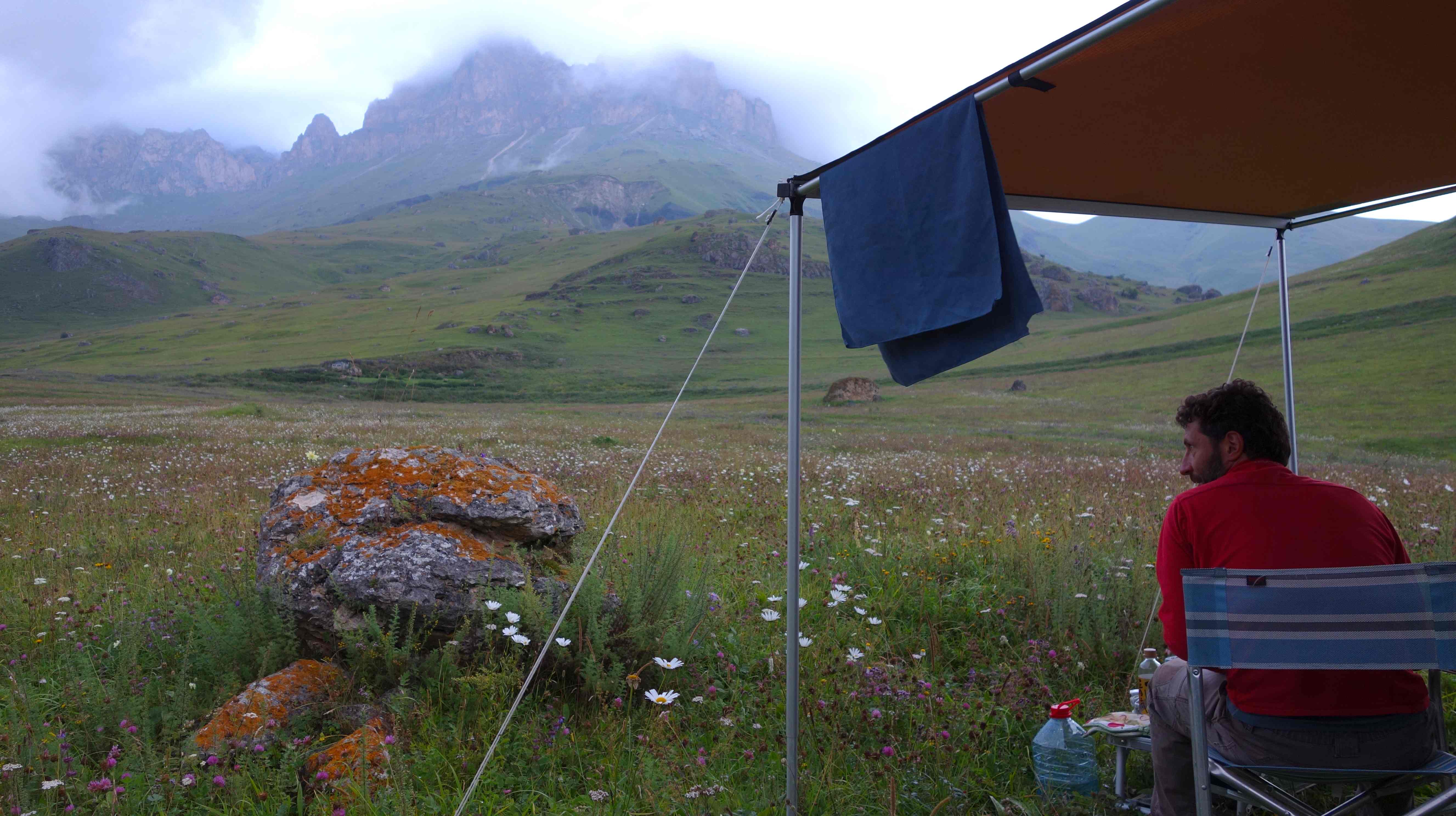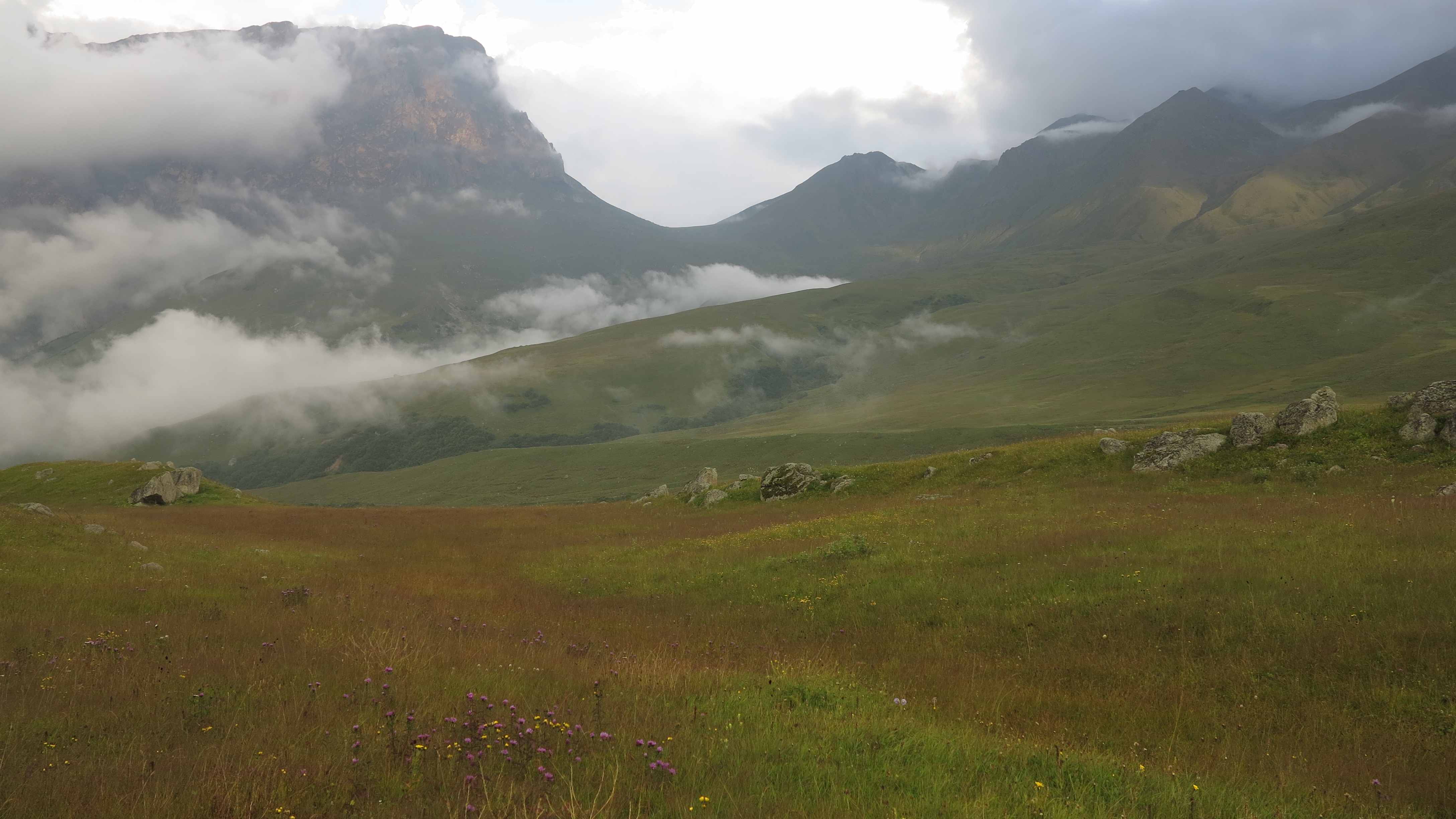 16-22 August 2013. We are preparing to climb Mount Elbrus here in the Caucasus Mountains and so after 2 months of climbing nothing we have to make an effort. We went into the valleys north and northeast of Elbrus to spend some time in altitude and to hike around a bit. Generally, we had very grey weather! The valleys were still beautiful and we did have some sunny days as well but……also quite a bit of rain!