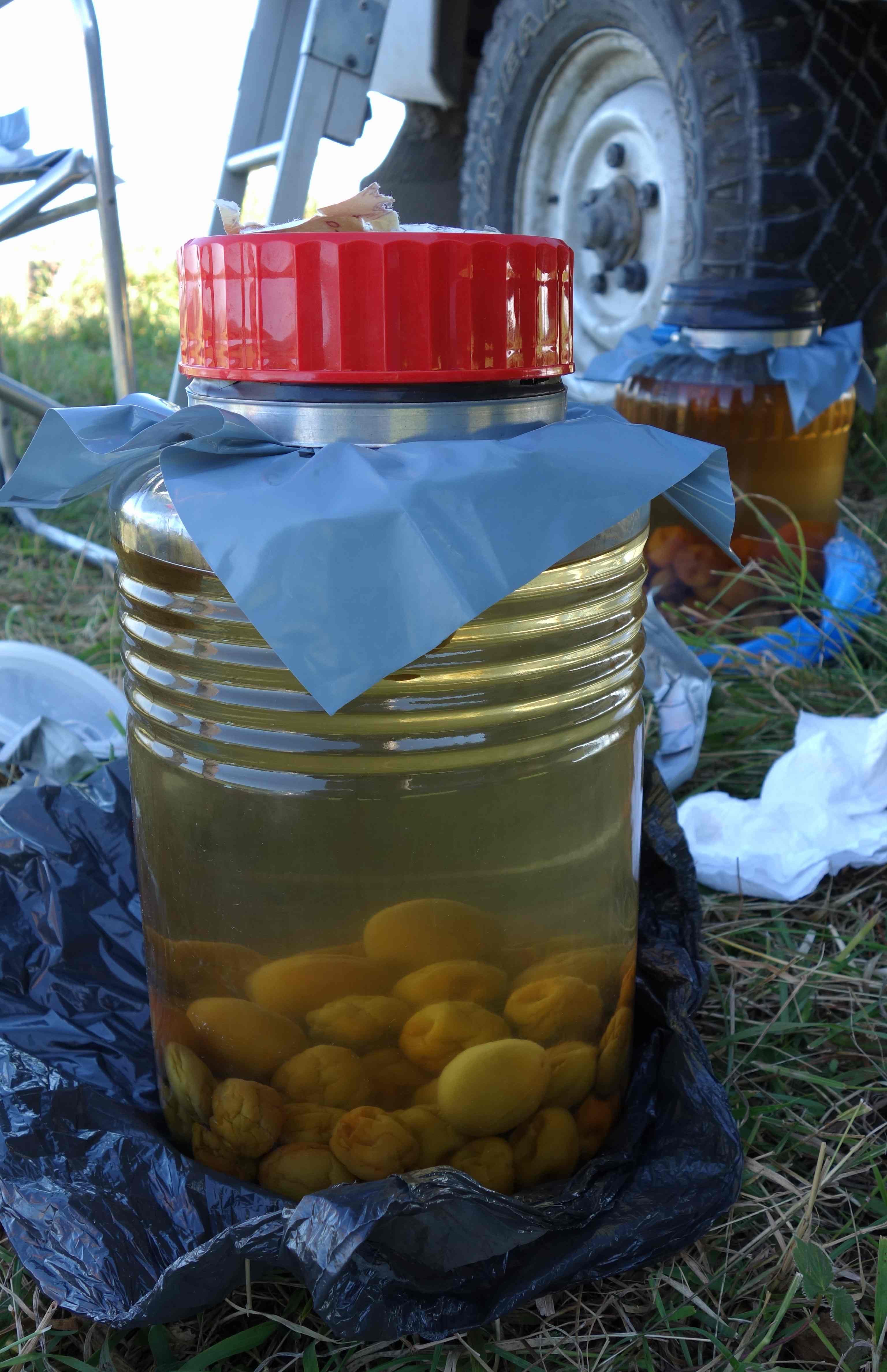 But we were wrong if we thought that now we could relax. Next thing we found out that our homemade japanese umeshu was leaking! Aaaaaarrrrgh! The solution was a mix of extra strong quality plastic bags for human-waste (!) from our Aconcagua expedition plus electrical tape, gaffa tape, insulating tape for windows and finally a metal ring closure (what is it called in english?). Anyways, it works!