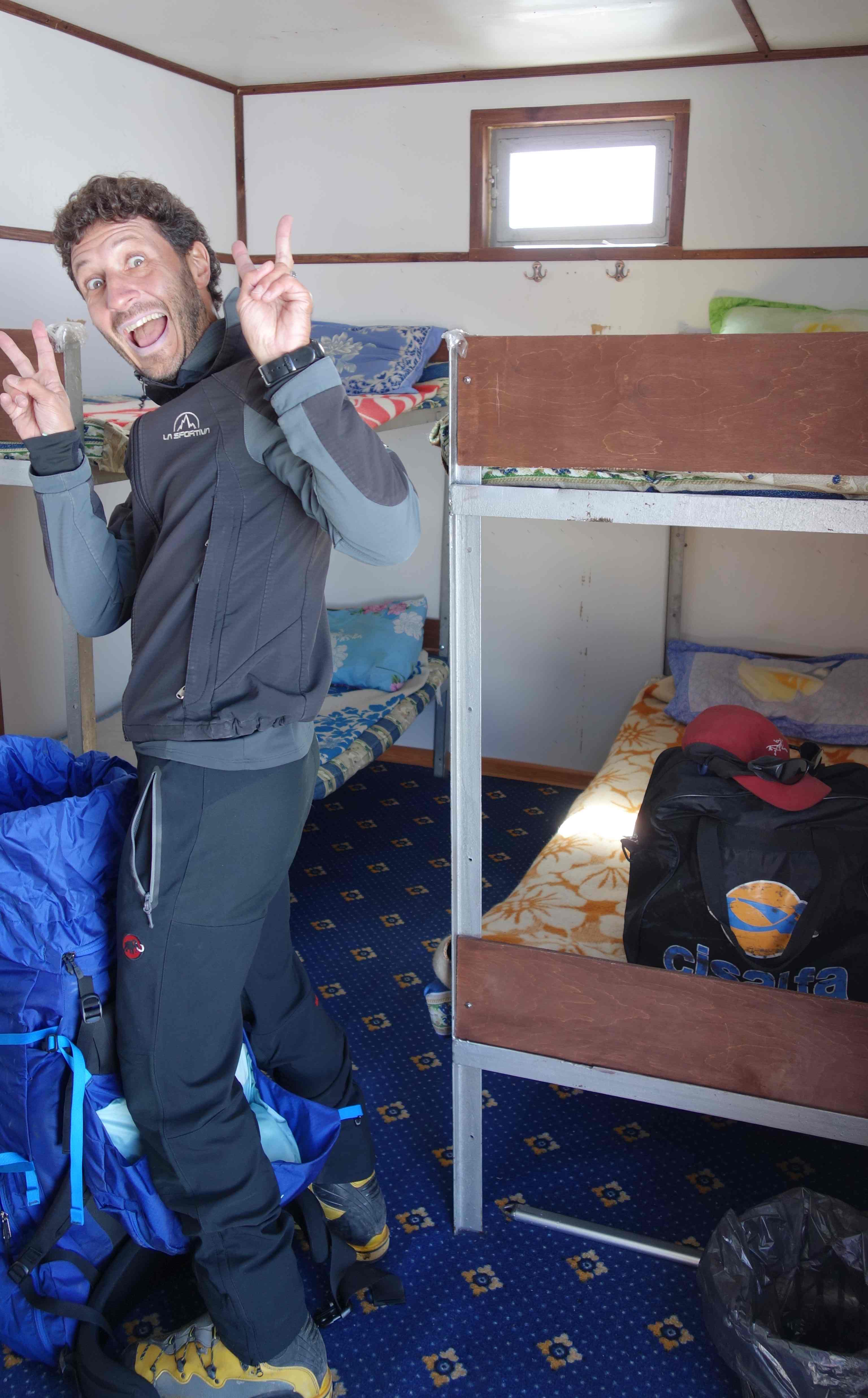We met with our group and guide in Terskol, a village in the Baksan Valley at the foot of Elbrus. Here we are preparing all our things in our hotel room at the nice and friendly Hotel Salaam.