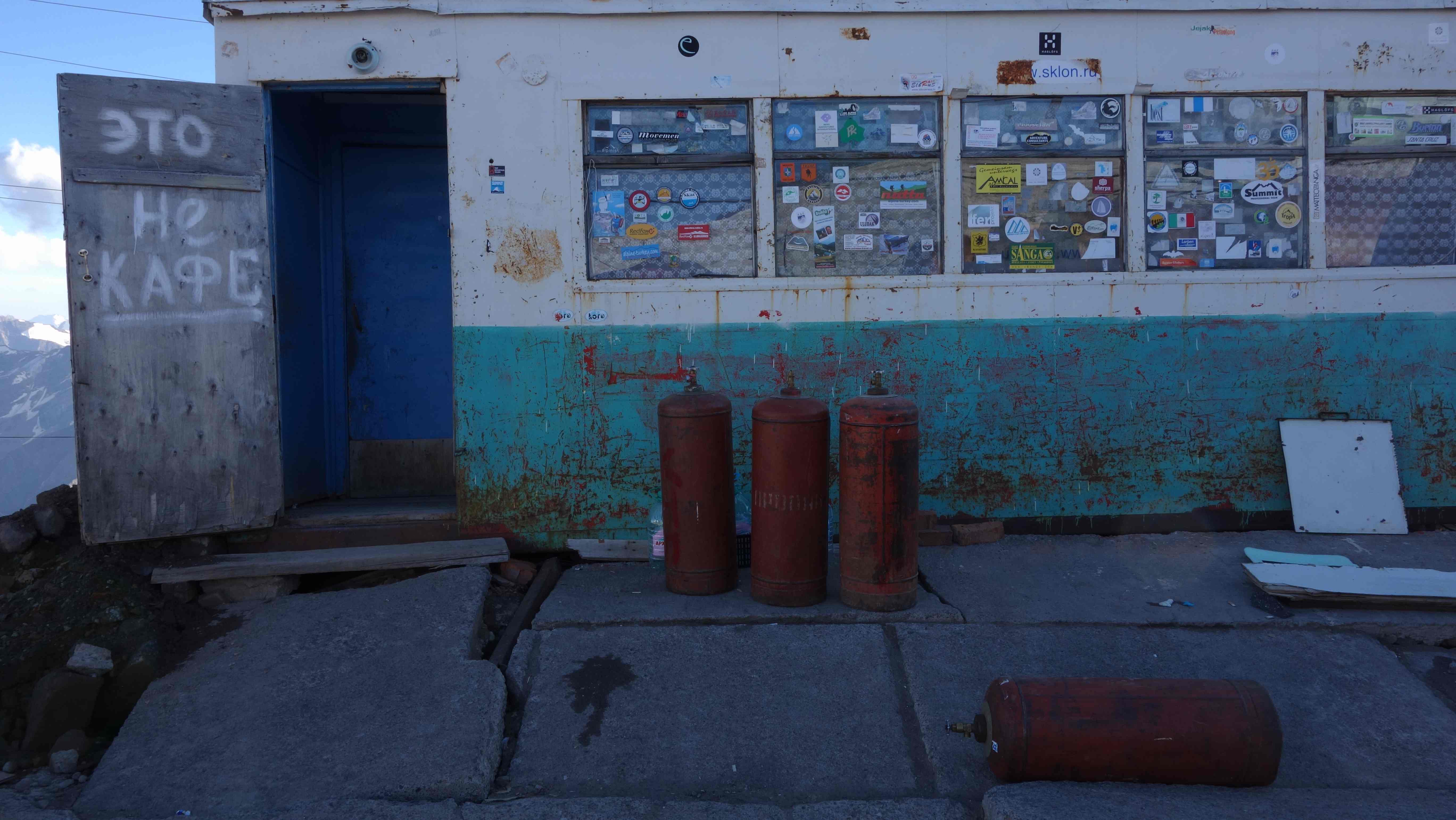 The base camp of Elbrus, for the south face standard route, is often just referred to as “the barrels”, see photo below. The barrels are a bit run down and especially the toilet facilities are infamous, but lots of people stay here before their climb to the peak of Elbrus. We stayed in a nicer and newer camp next to the barrels.