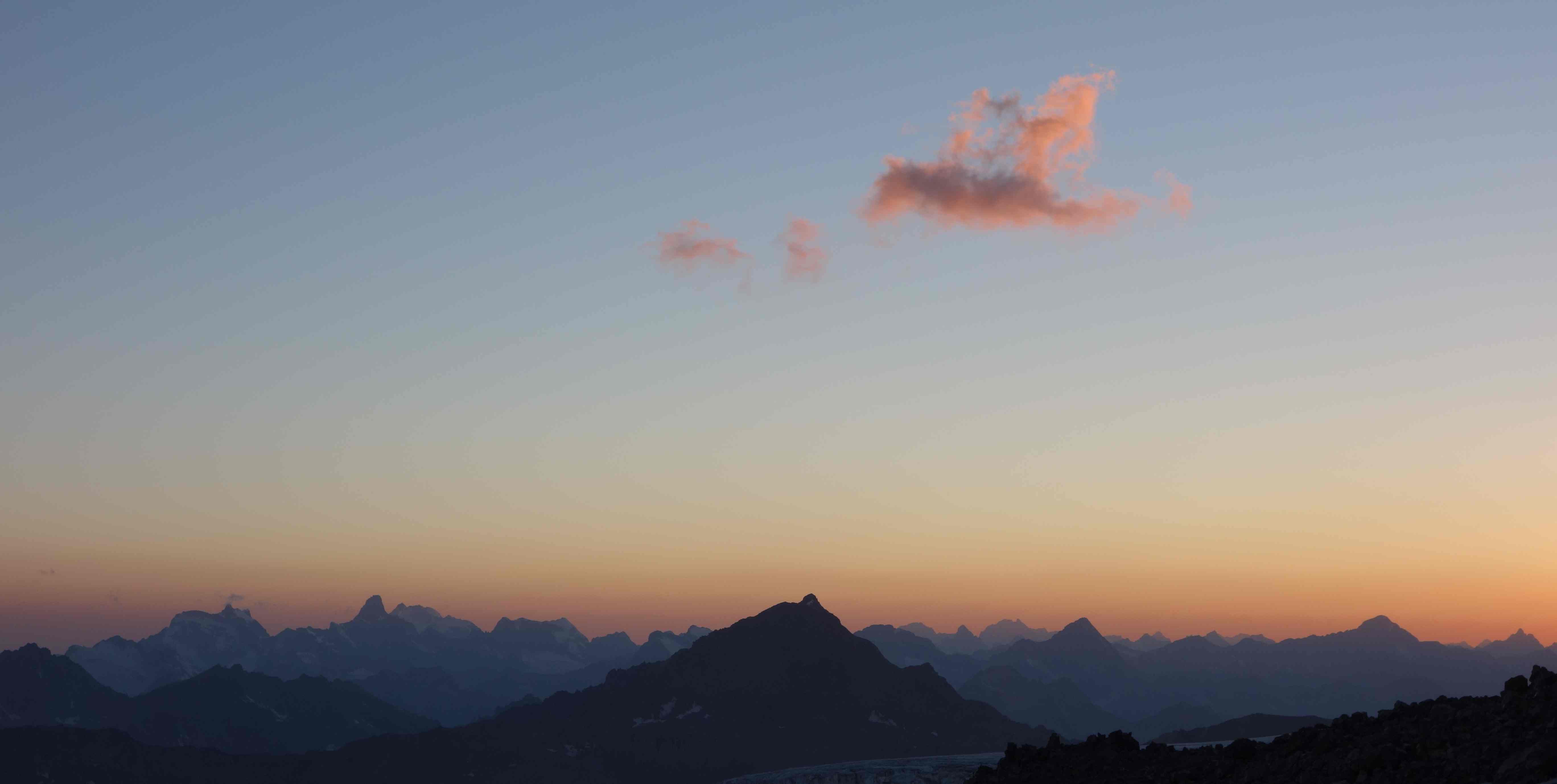 Finally down again at the camp, we could let the sun set over a brilliant summit day.