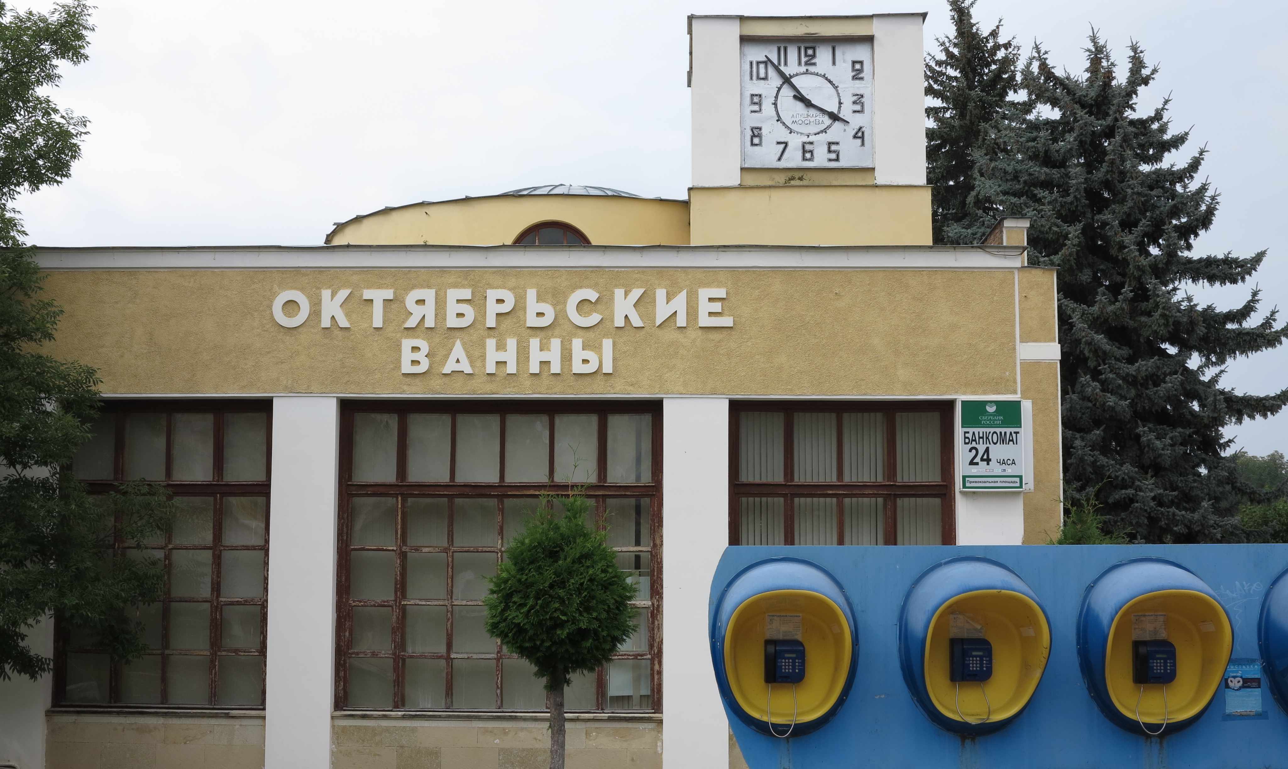 And the Oktober Baths, unfortunately also closed. Note that the clock is showing Moscow time like in all train stations across Russia.