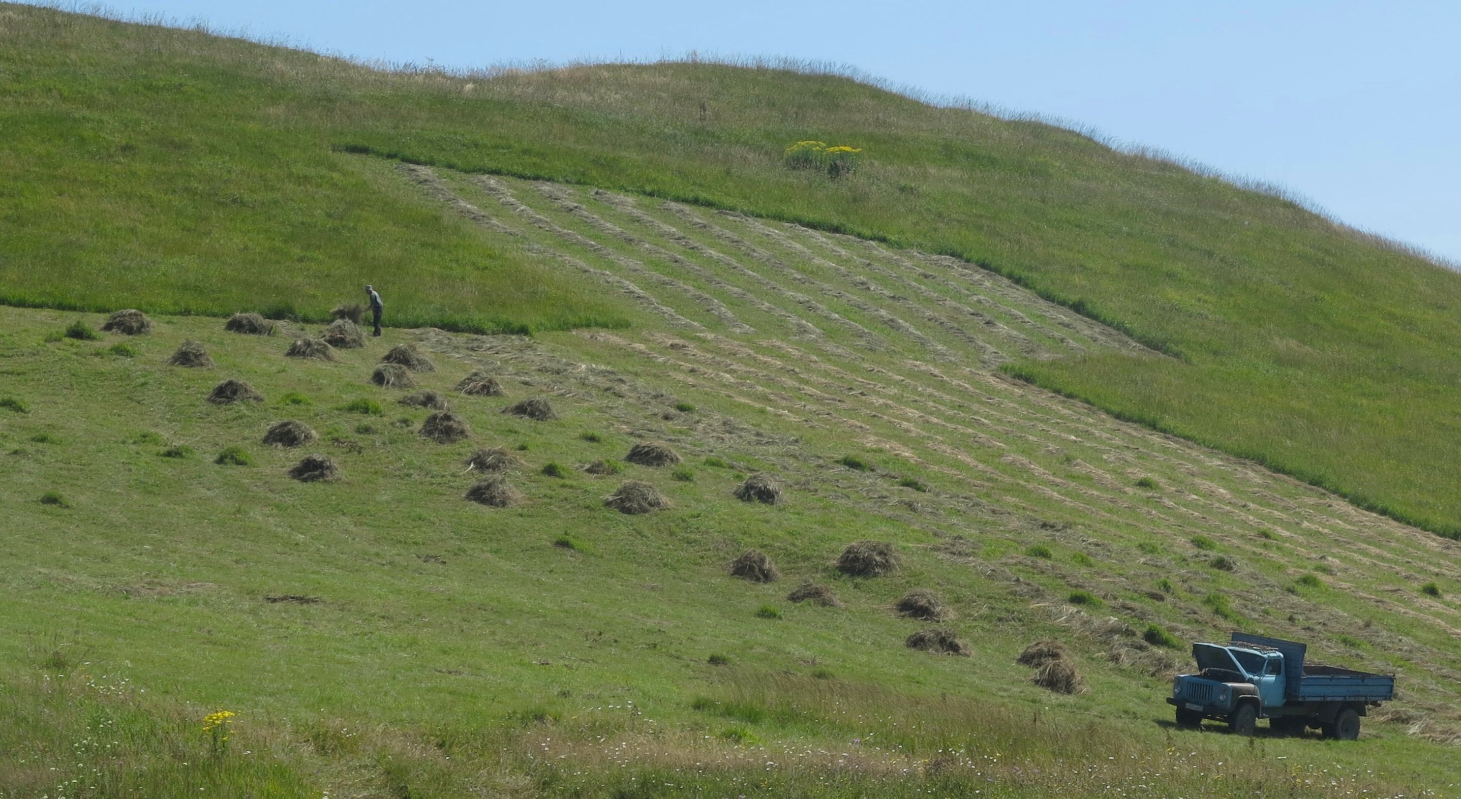 And this is where the hay comes from. This time of year, everybody seems to be out cutting hay in the hills, and they are cutting it by hand with scythes!