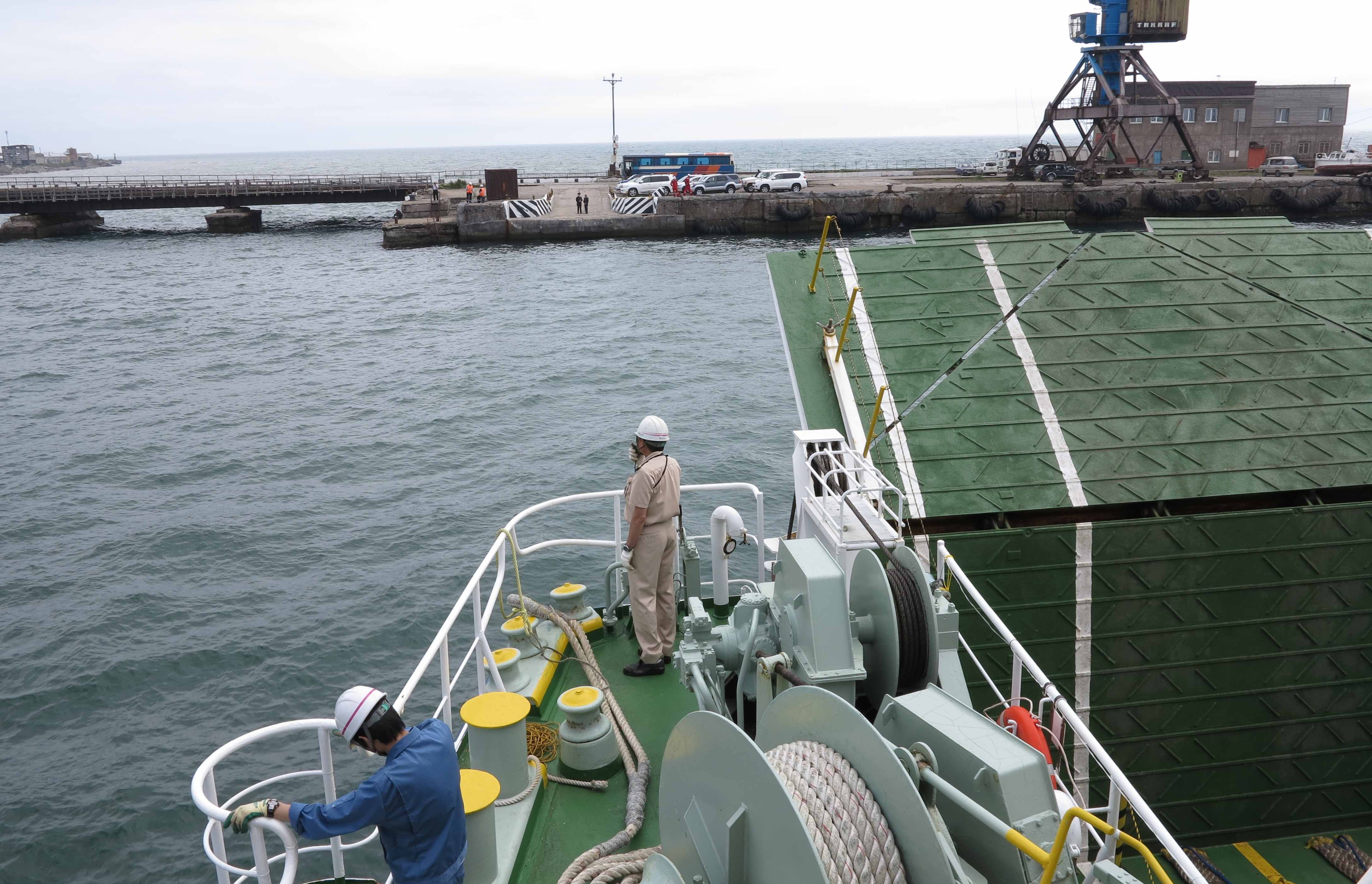Frida and Marco board the Sakhalin-9 ferry bound for Vanino on the Russian mainland.