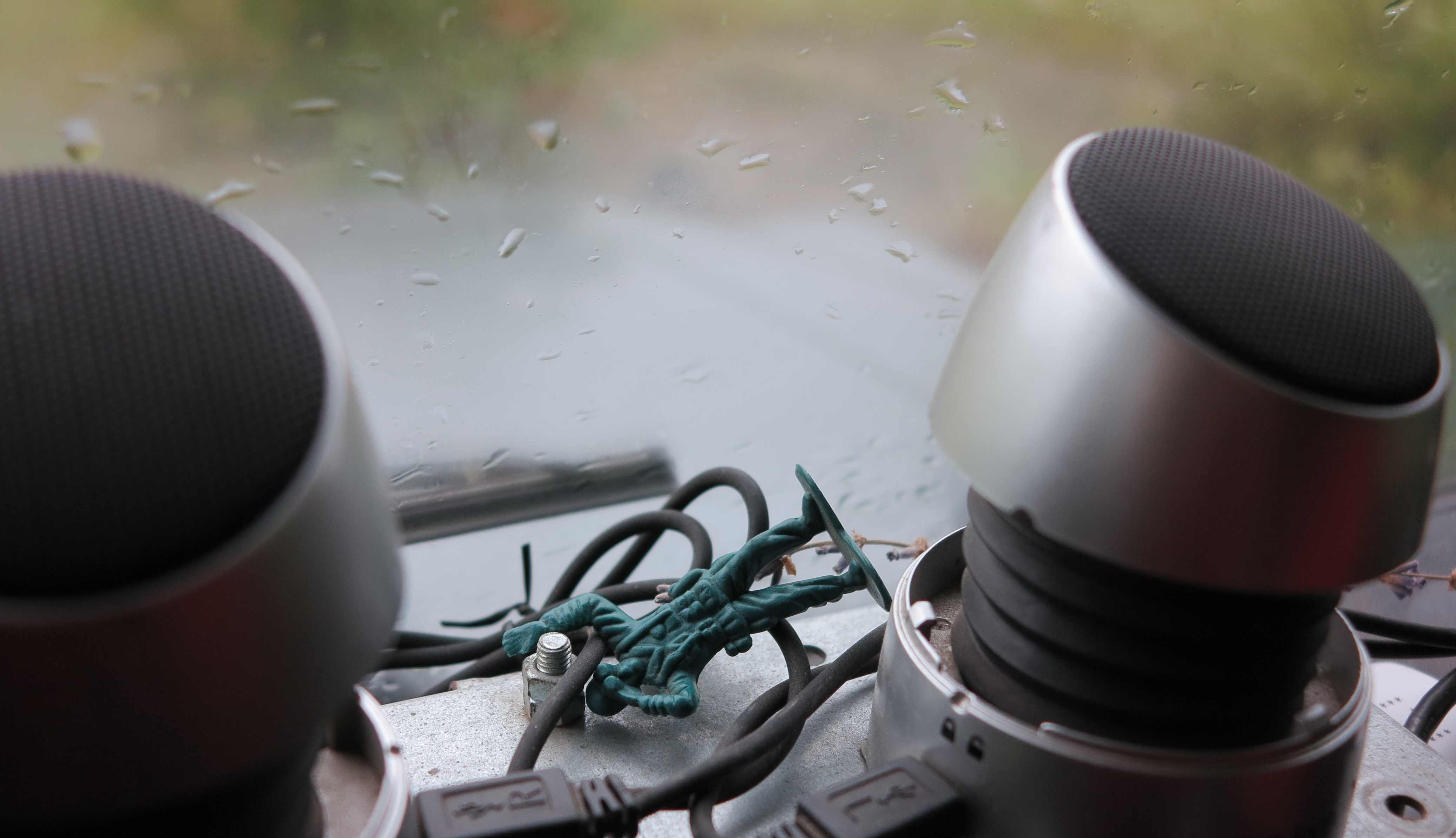 Honestly, we were not having a good time. We were struggling with zillions of aggresive mosquitos and horse flies and other biting flies – and otherwise we were struggling with lots and lots of rain. Basically it meant that we could not make our exercises outside, we could not run and then take a nice bath in the river without being eaten by the mosquitos, we could neither cook a hot meal for dinner because the mosquitos were so many and so aggressive!!! Here Marco is enjoying yet another bread, cream cheese and chili sauce dinner inside the car…