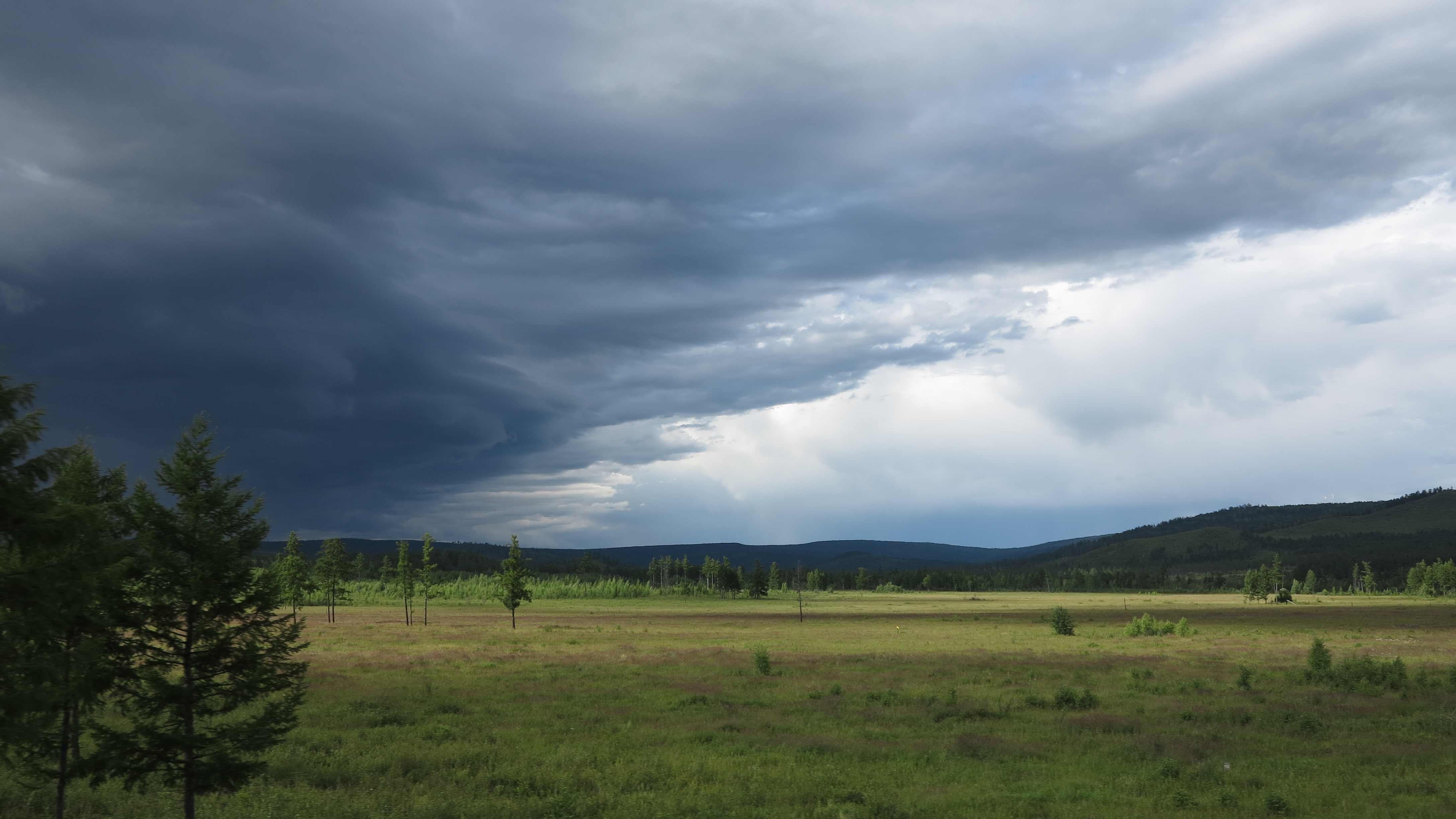 Here yet another nice storm is sweeping across the taiga. This one bombarded us with cm-sized pieces of ice.