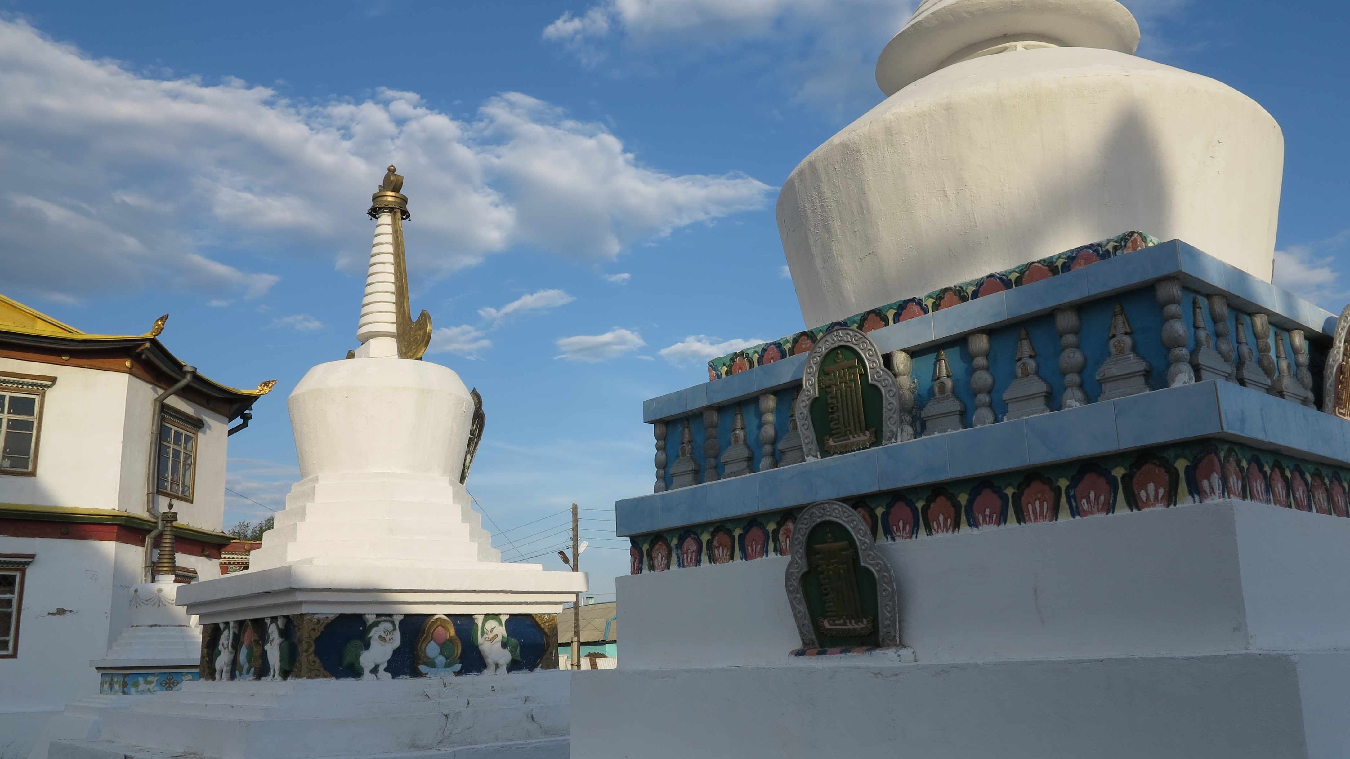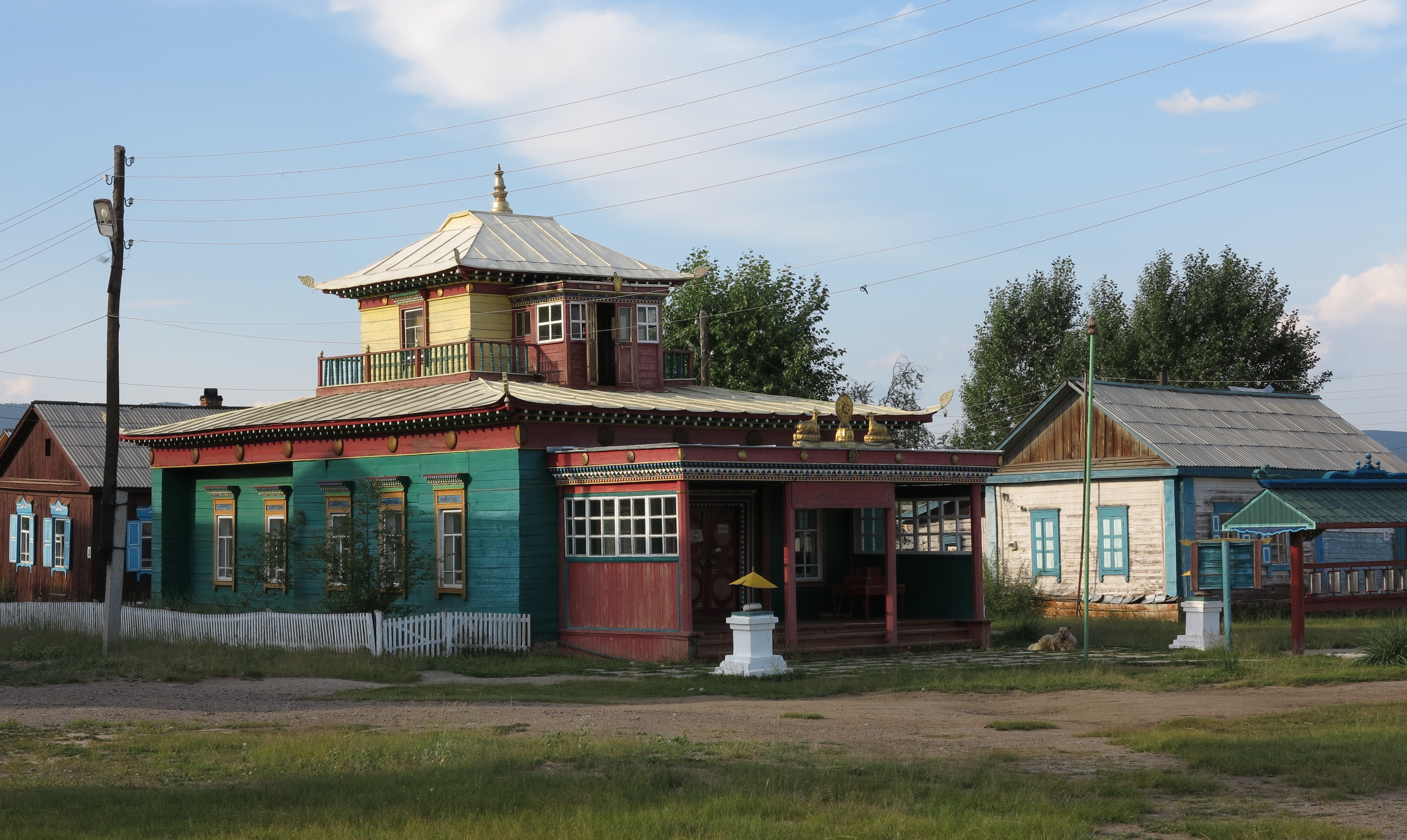 Here the first house (white and blue to the right) and the first temple built on the grounds of the datsan.