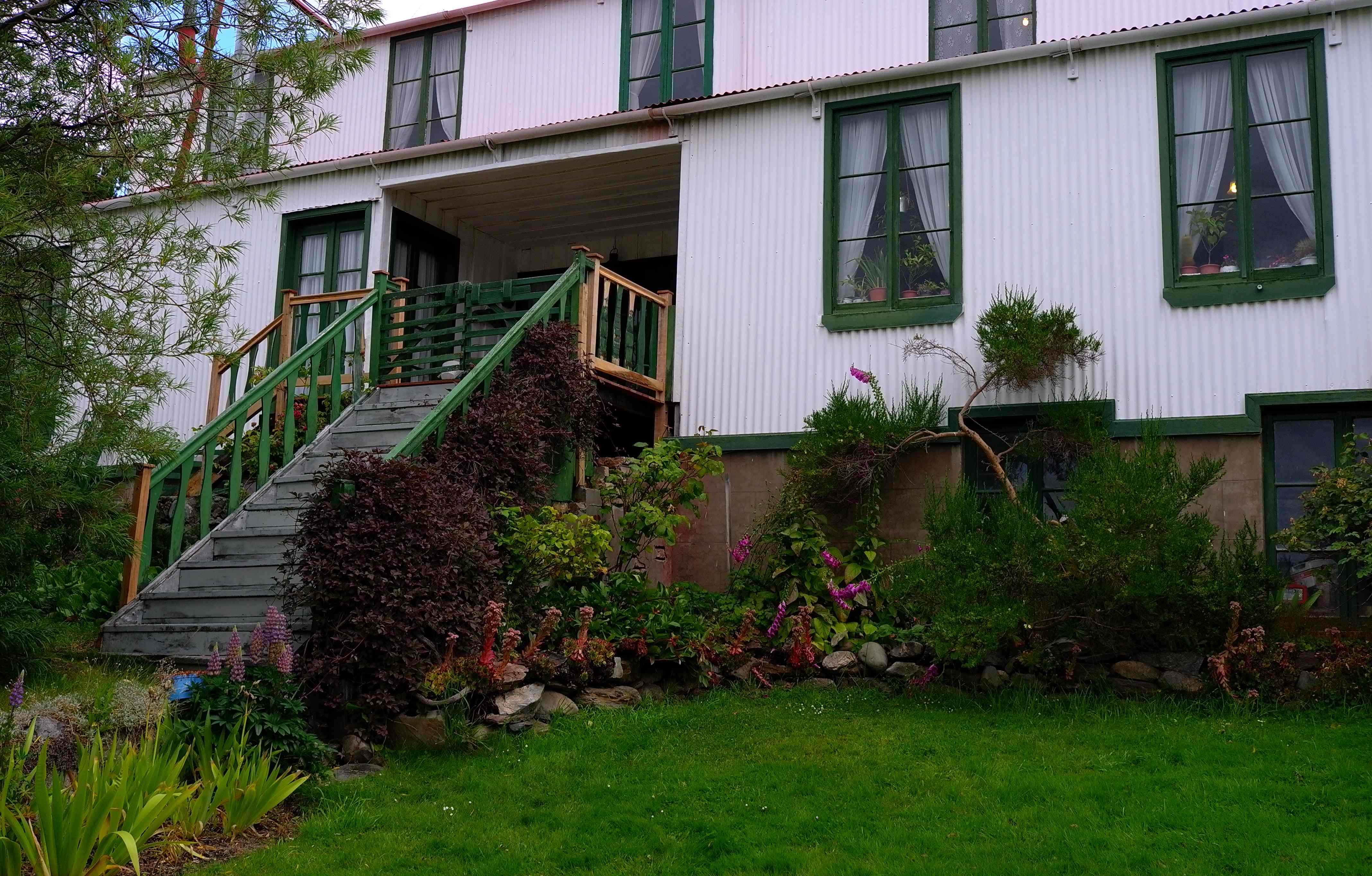 Here is the main part of the estancia with the sheep shearing house at the far left where they cut the wool off the sheep and packaged it for shipping it out – there was no road. Then there is the boat house where they still keep the whaling boat. And the two-storey building in the back is the main house.