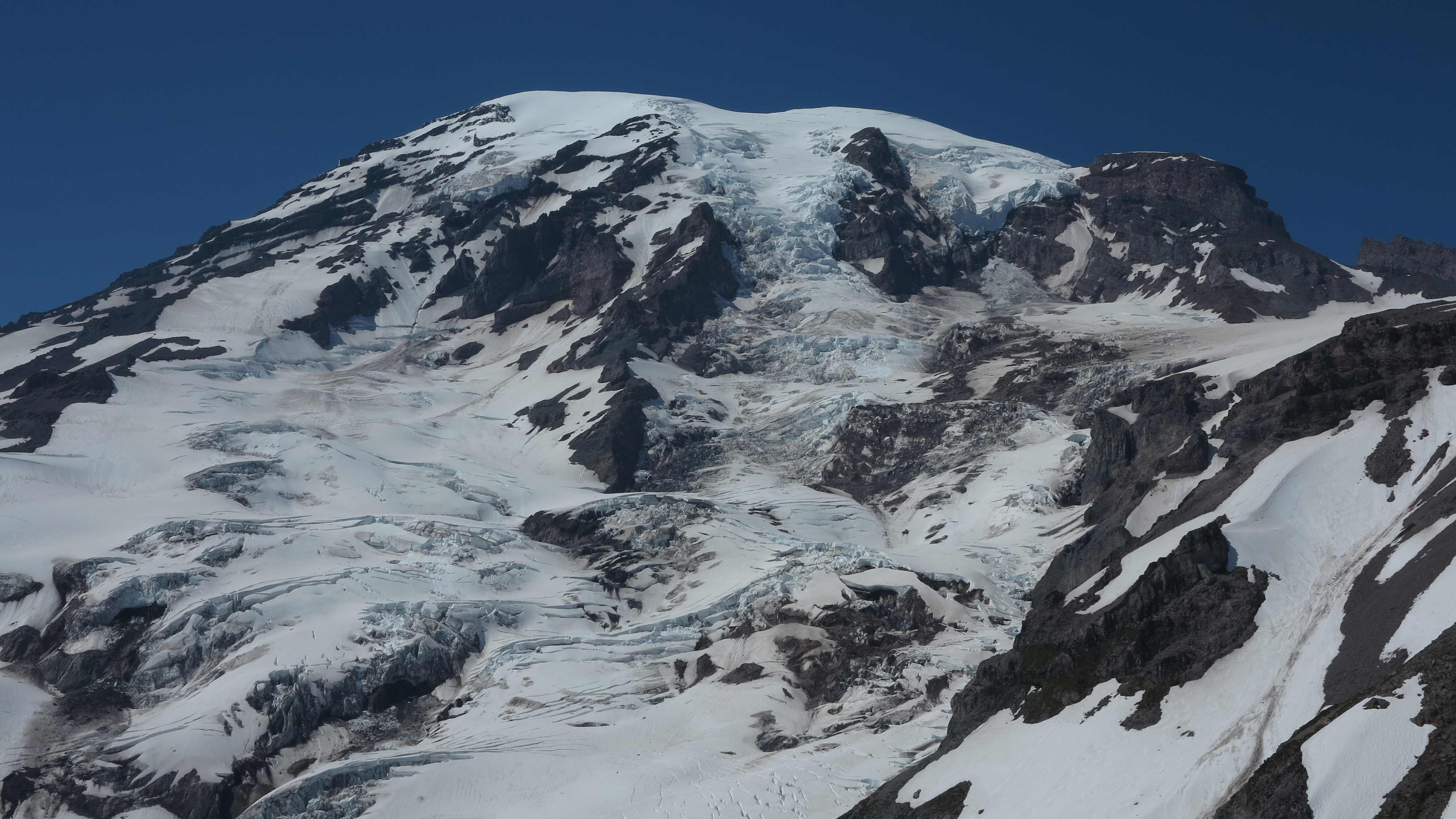 Mount Rainier from Ingraham Flats, the start of the normal route clearly visible