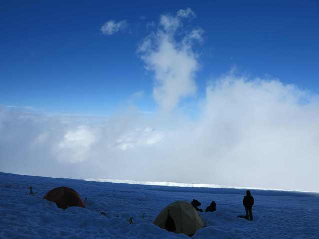 Other climbers waiting to summit, late afternoon at Ingraham Flats