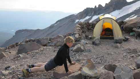 Summit of Mount Rainier! Holding on to the camera bag and the straps of the rugsack which were otherwise flapping around wildly in the icy wind.