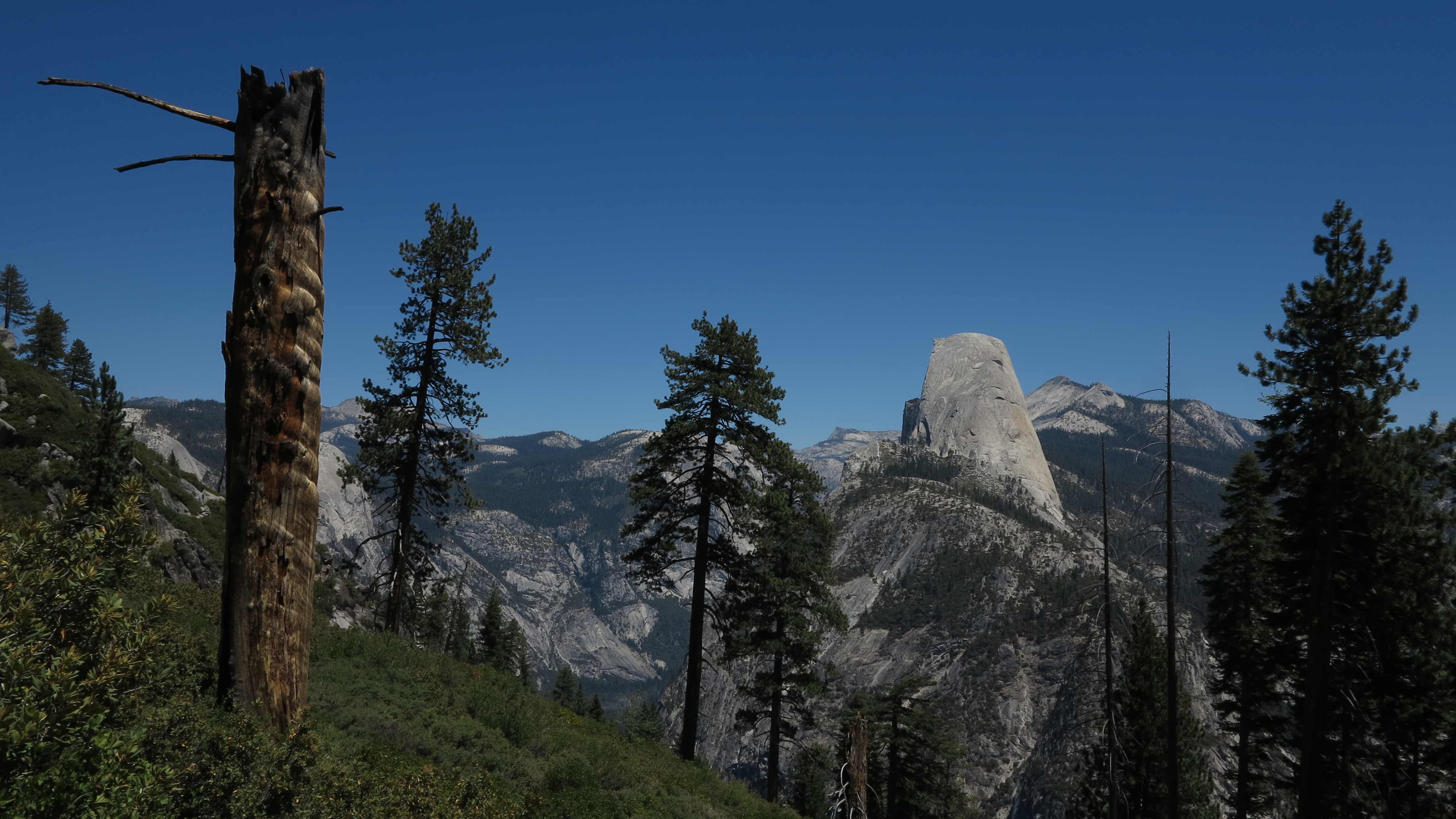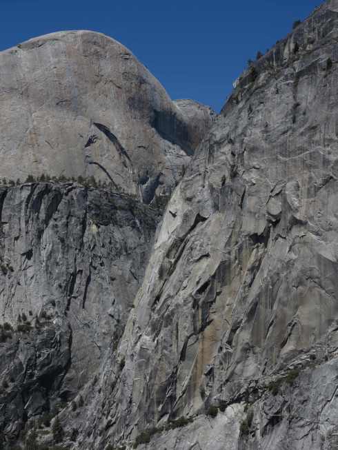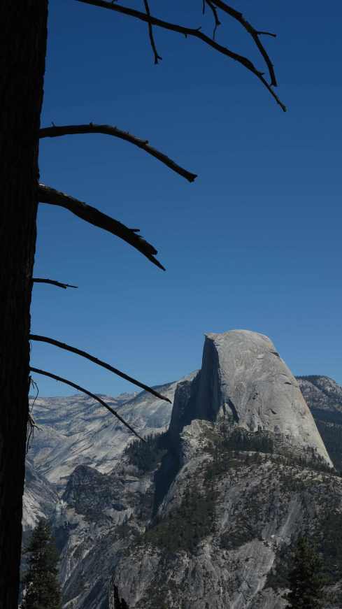 The east face of Mount Whitney stands like a bright shining cathedral against the deep blue sky.