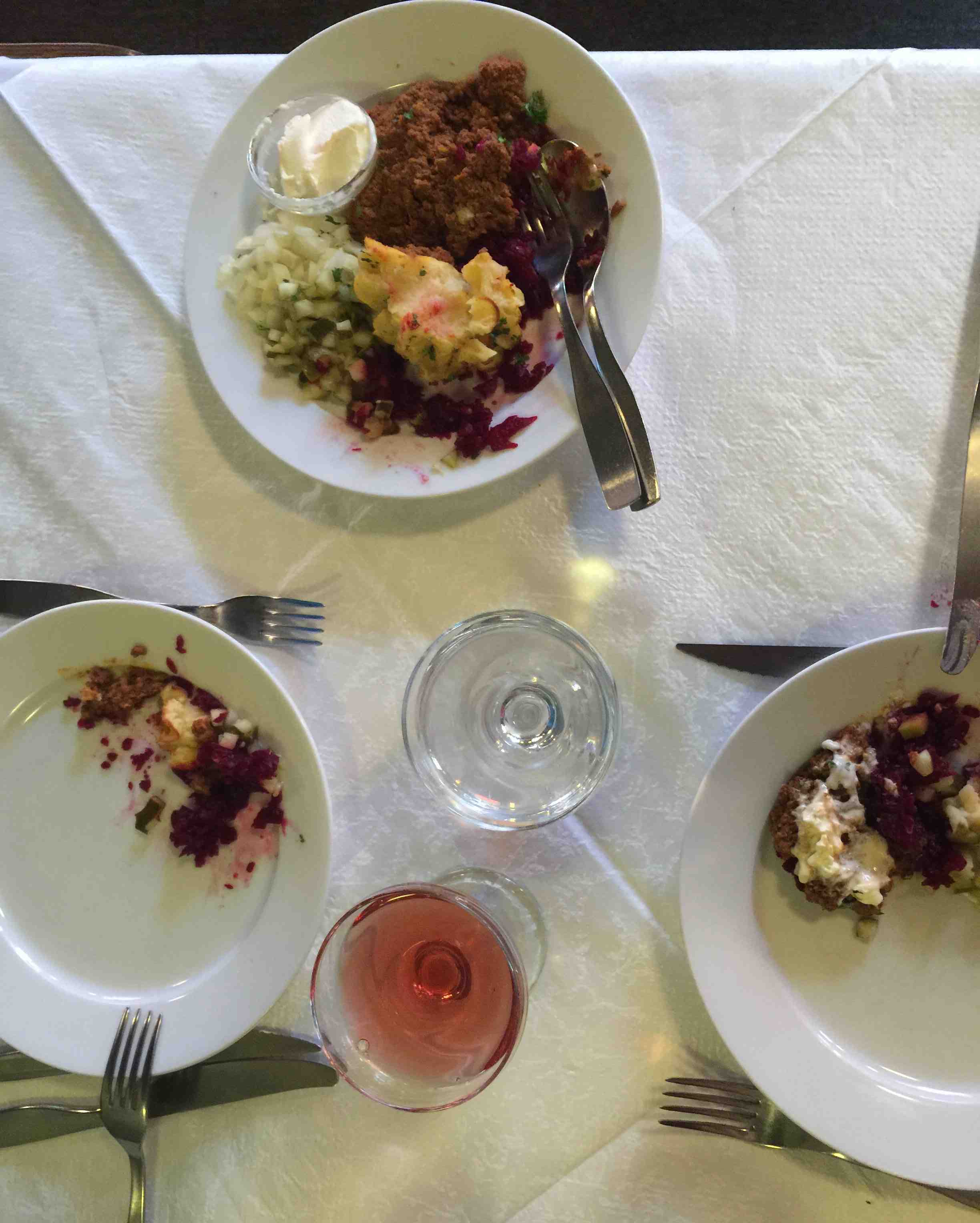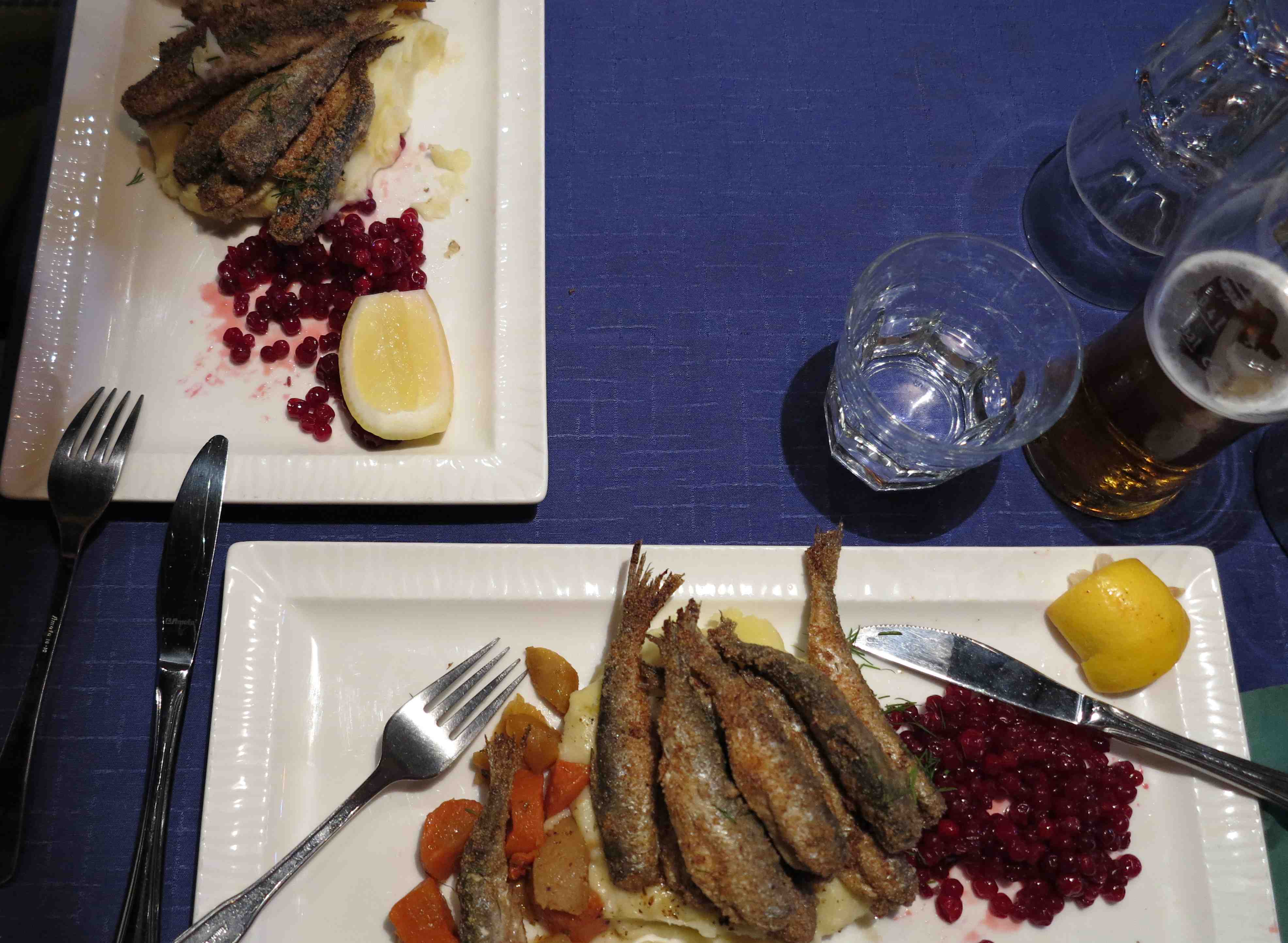 And here the small fried fishes with mashed potatos and lingonberries – a summer-time delicacy.