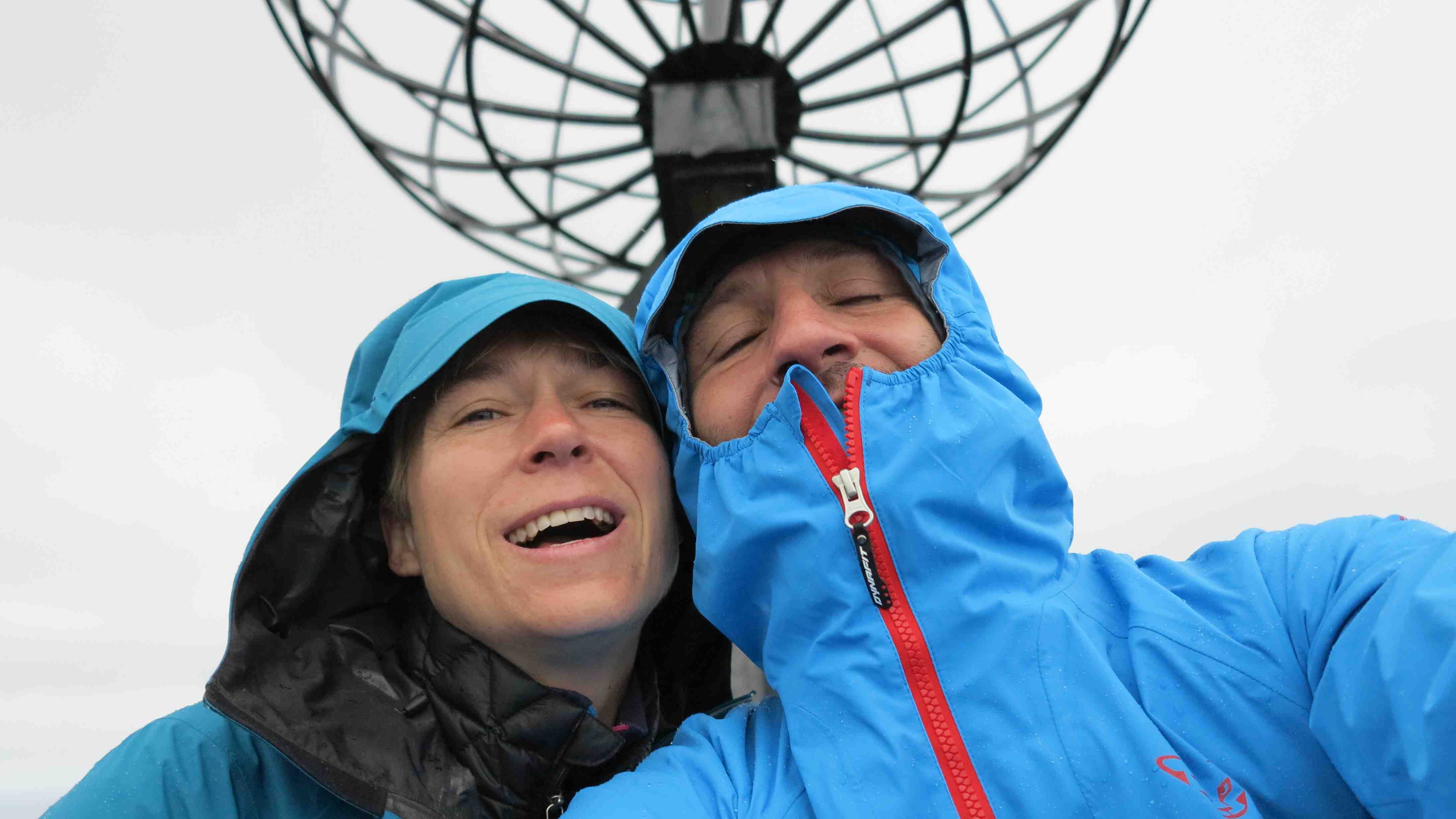 Finally it cleared up enough to see which direction to go and we got the obligatory picture at the North Cape with the globe 😉