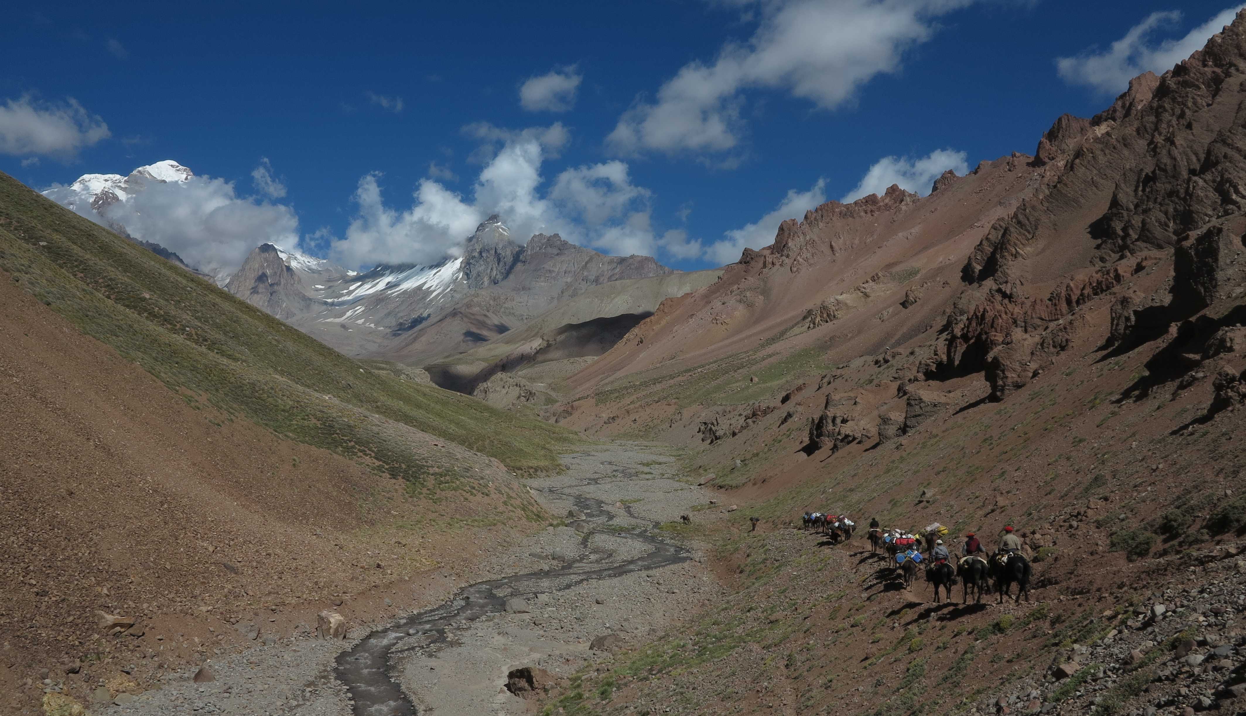 Ahead of us we had 1 night in an hotel in Penitentes, 3 days of trekking with light rugsacks and mule support up to Base Camp at Plaza Argentina, then 3 nights in Base Camp, carrying and moving to Camp 1, then 3 nights in Camp 1, carrying and moving to Camp 2 etc, etc. In short, it seemed like we had a full eternity of time in front of us before we could hope to set foot on the summit of Aconcagua! This was a great test of our impatient souls!