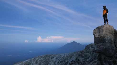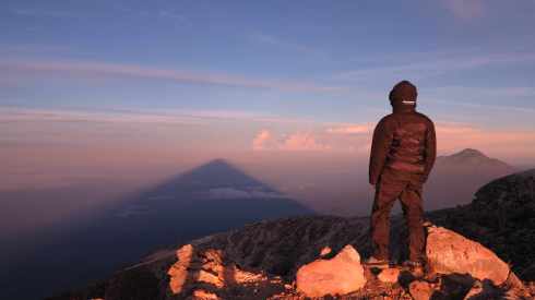 We reached the summit at 4.15, a full hour and 15 minutes before the sunrise! Fortunately we had our big down jackets from Seattle to help keep us warm while we waited under the stars, watching as the horizon turned lighter blue, then pinkish and orangey before finally the full explosion in orange and yellow as the sun rose above the horizon. We had an incredible view to the valleys and villages below, to the neighboring Volcan Tacana and to the more distant volcanoes in the direction of Lake Atitlan.