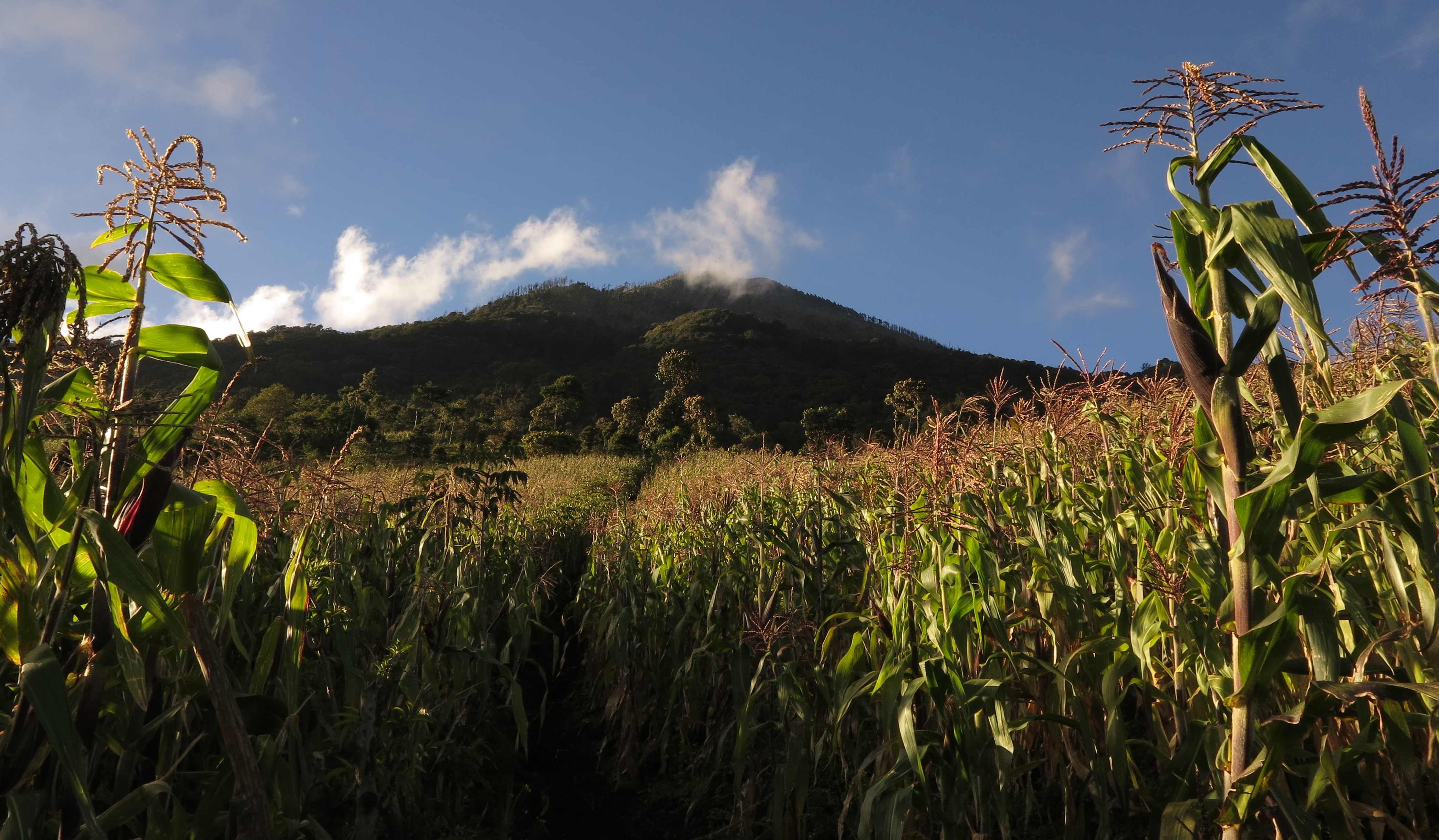 The first time we took this trail, going straight up through the corn fields towards the volcano. A mistake!