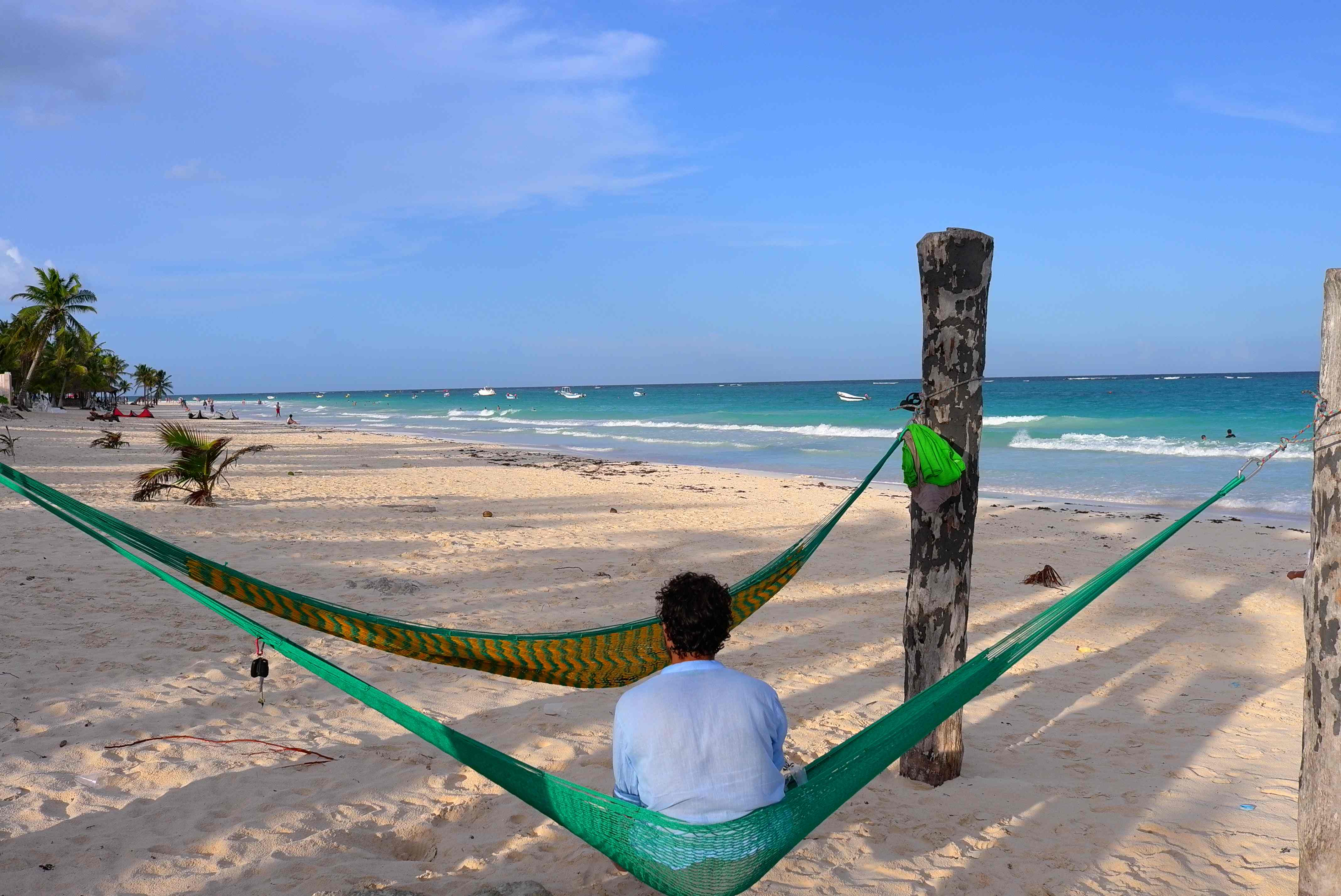 Enjoying the last moments of Mexico with a cold beer in the hammocks.