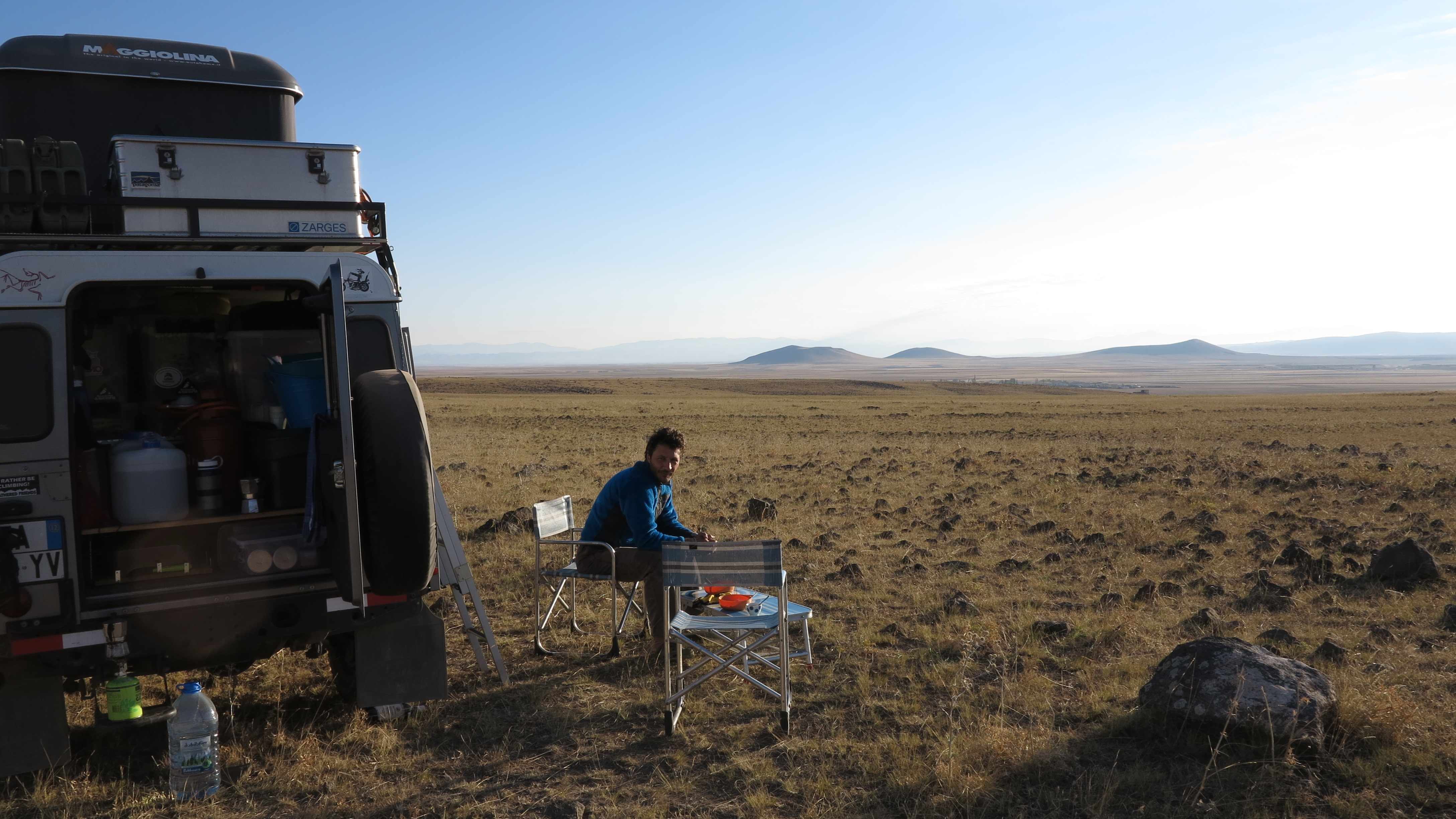 Camping in the hills close to Davit Gareja on the border between Georgia and Azerbaijan. One of our nicest and most peaceful campsites of the trip.